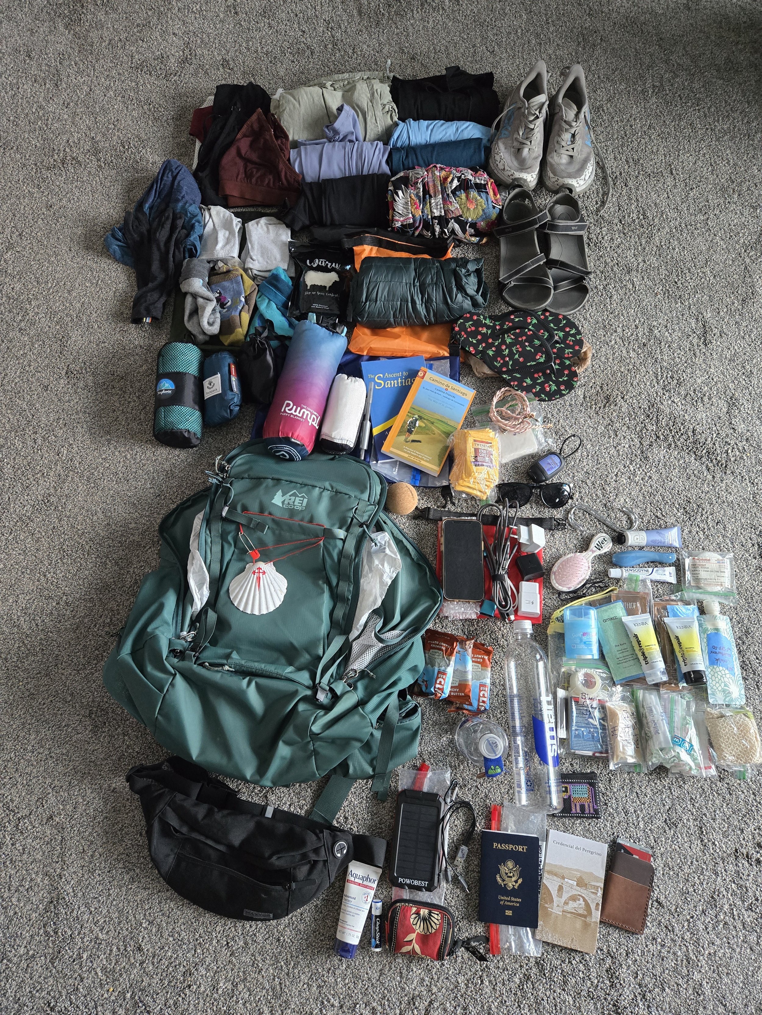 Everything I packed on my Camino