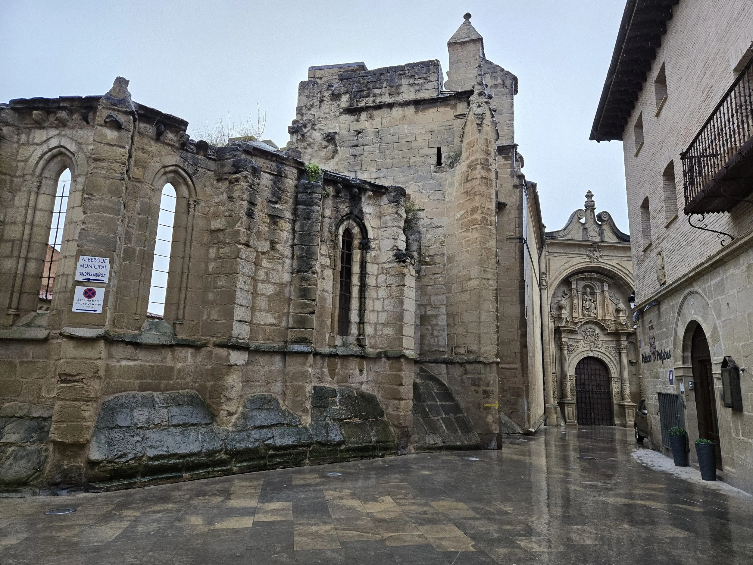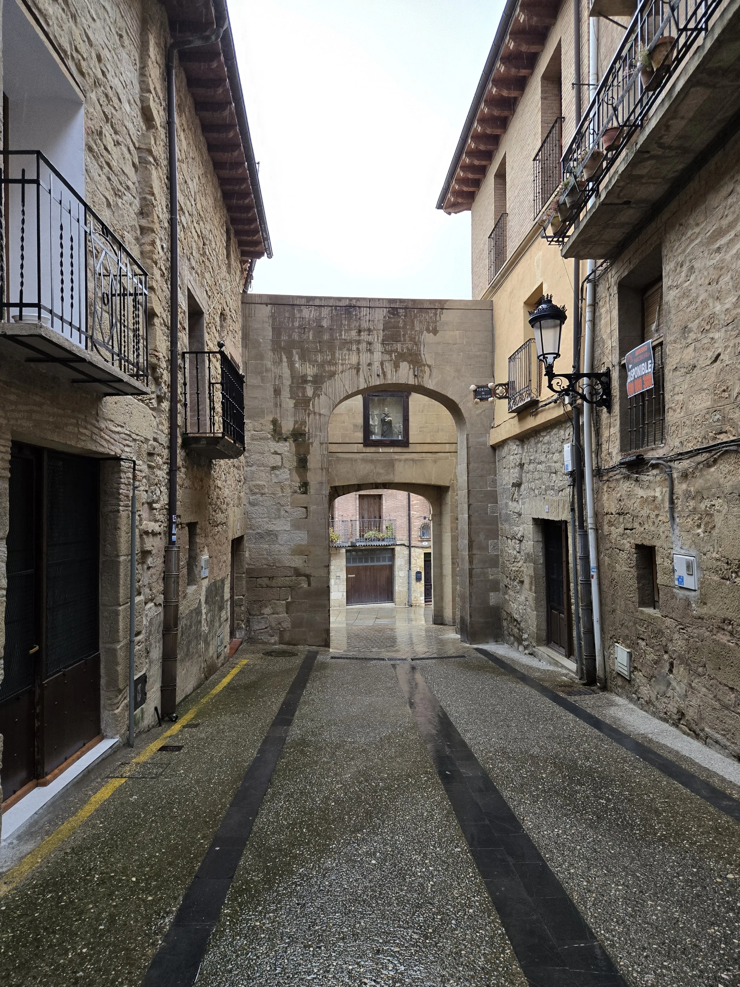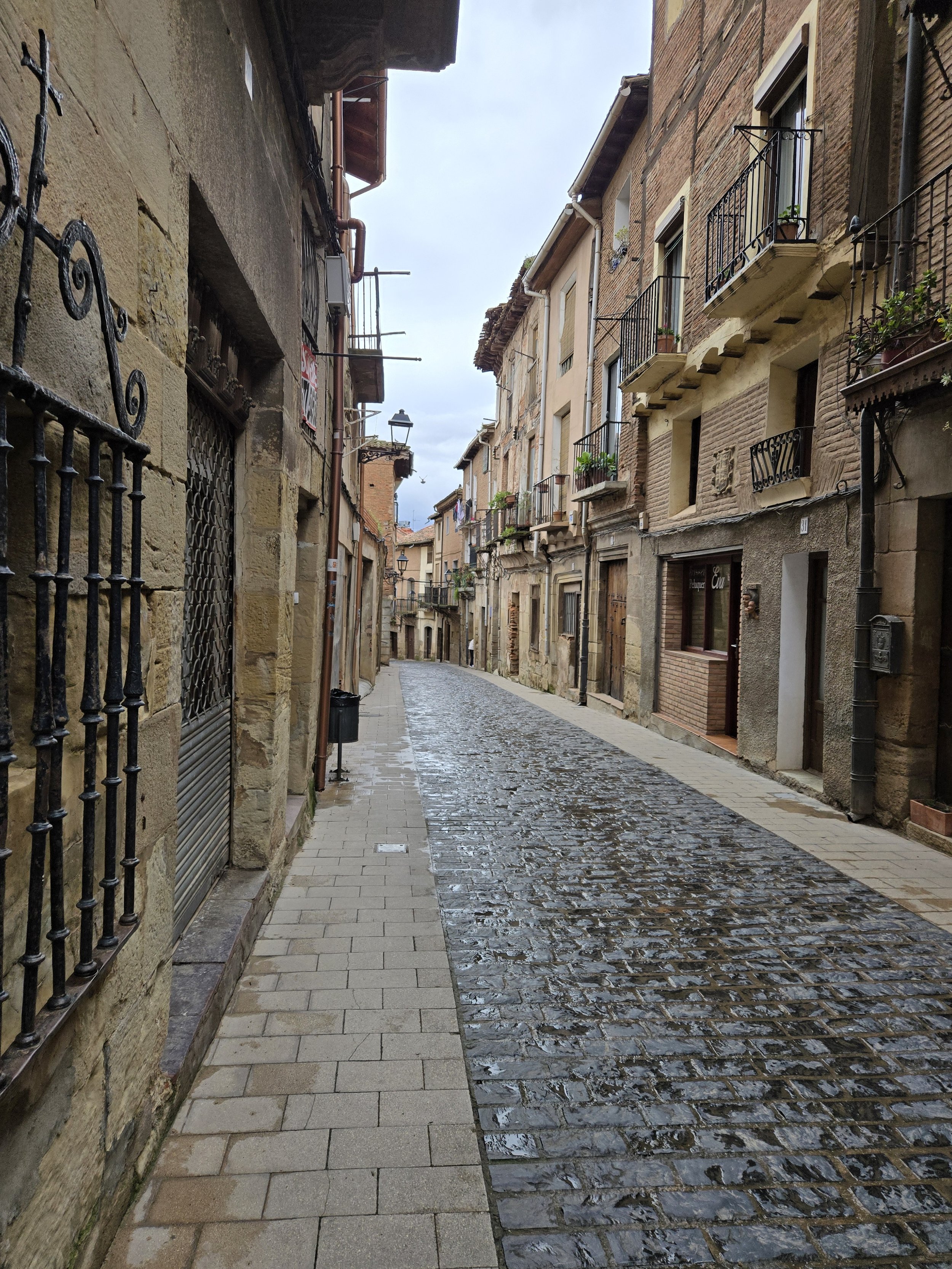 Arriving at the magnificent bridge that entered the old city of Logroño, debated my next steps. On the one hand, I felt great physically and like I could keep going to Navarette, on the other hand, the rain was continuing and I didn’t know much more cold, wet, and mud my feet could endure without causing larger problems. I stopped inside the Pilgrim’s Info Office since it was open and a brief respite from the rain. The man at the desk was very kind and helpful. I decided to take a bus and he gave me a map that listed the correct bus stop that would lead me to Navarette. I thanked him and continued over the bridge.