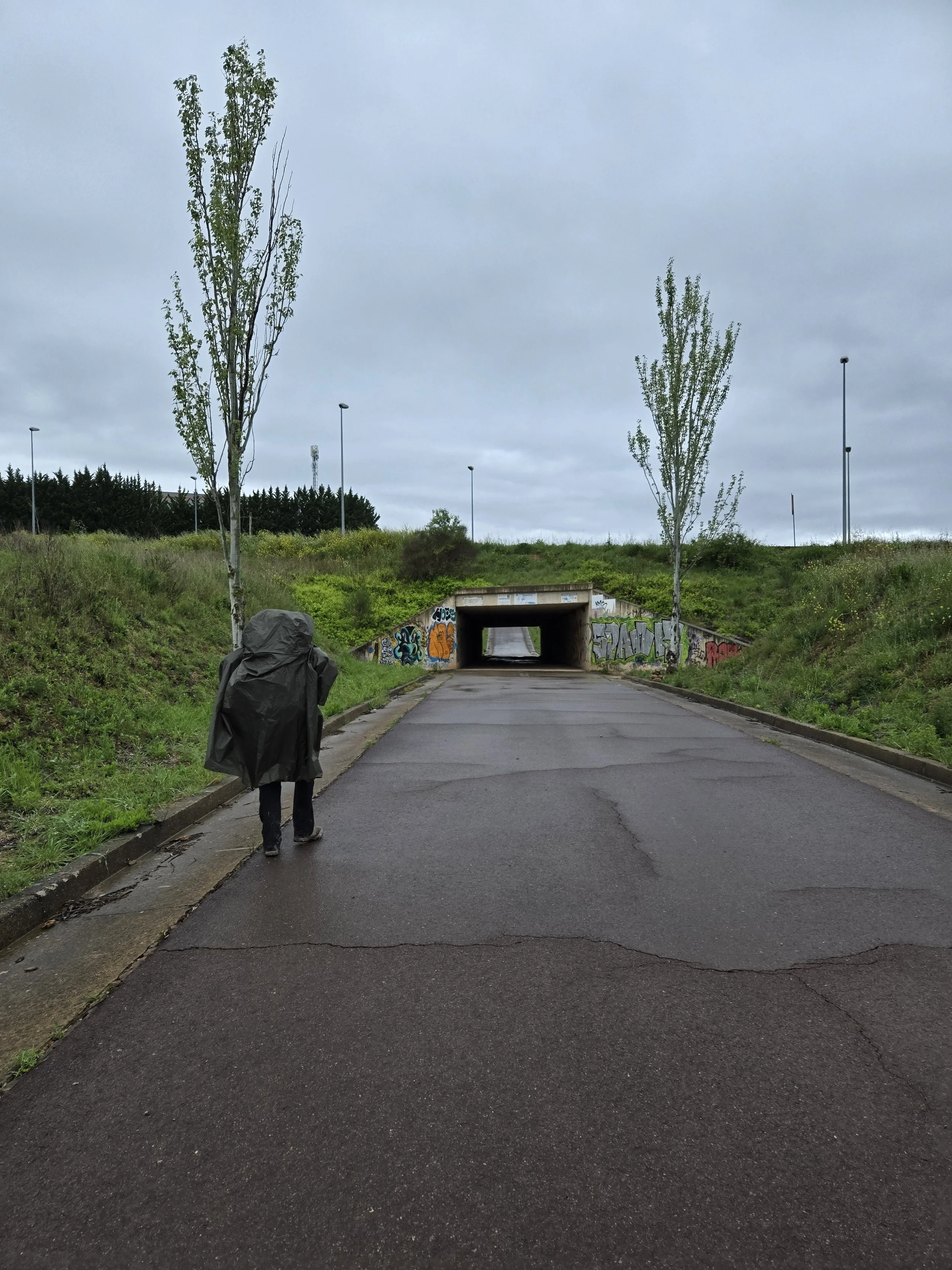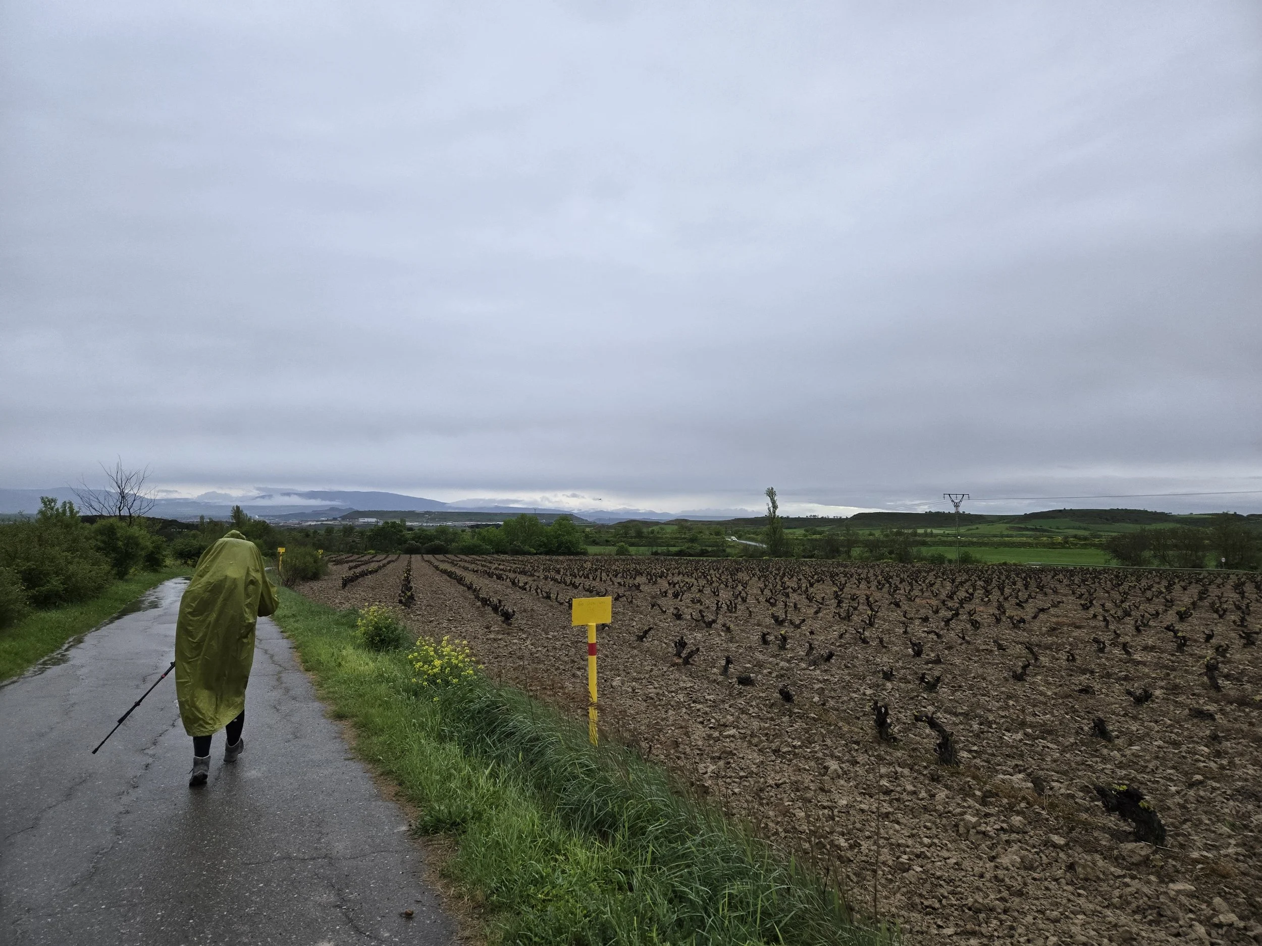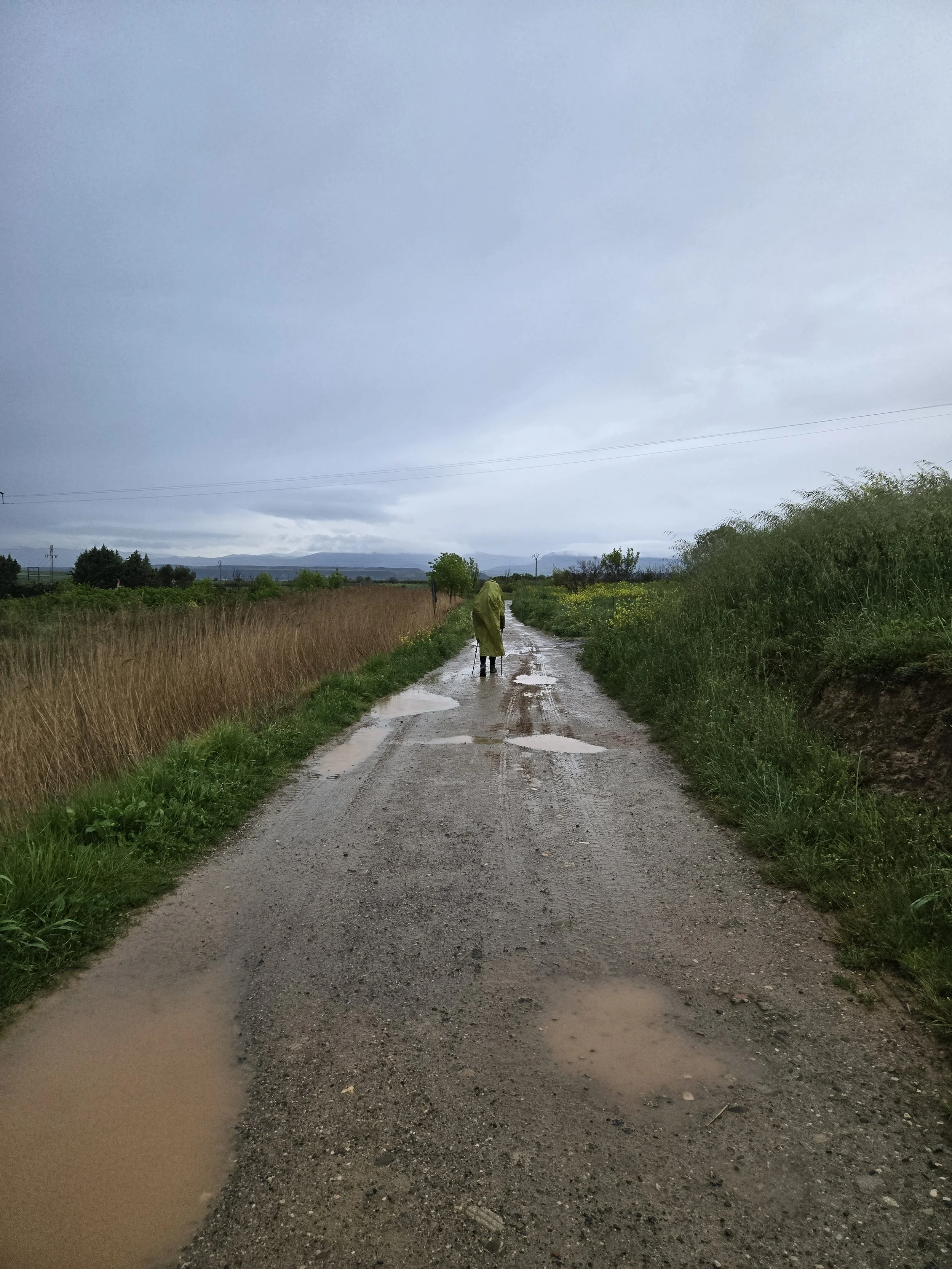 I left Viana around 7:45am in the rain. My sandals (which I’m still wearing because my Hokas won’t fit over the large blister on my left heel) and socks were soon soaked through. I had high spirits until I encountered dirt roads that had turned to mud. Progress slowed to a crawl and it was difficult as I navigated around excessive puddles and tried not to let my feet get stuck in the mud. Sandals definitely aren’t the ideal footwear for this terrain but they’re my only choice at the moment.