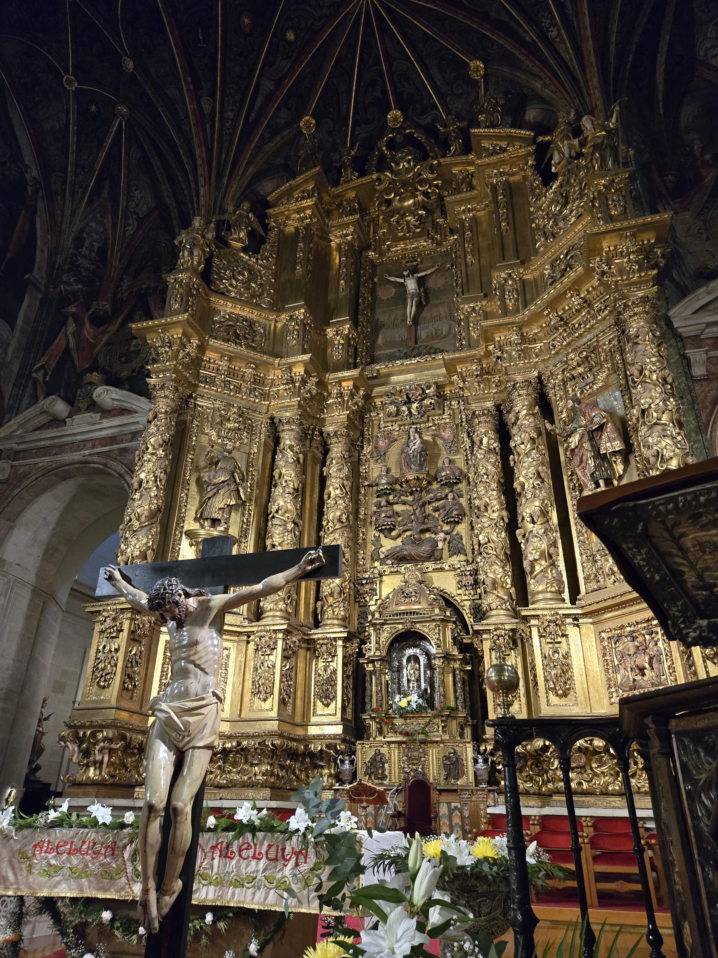 I visited the Cathedral first which was very large and beautiful. It was still open but there were lots of workers milling about getting everything set up for Easter tomorrow. I also saw some of the wooden effigies that were probably used in last night’s Good Friday procession. After looking around a bit, I found the office and the nuns stamped my credential.
