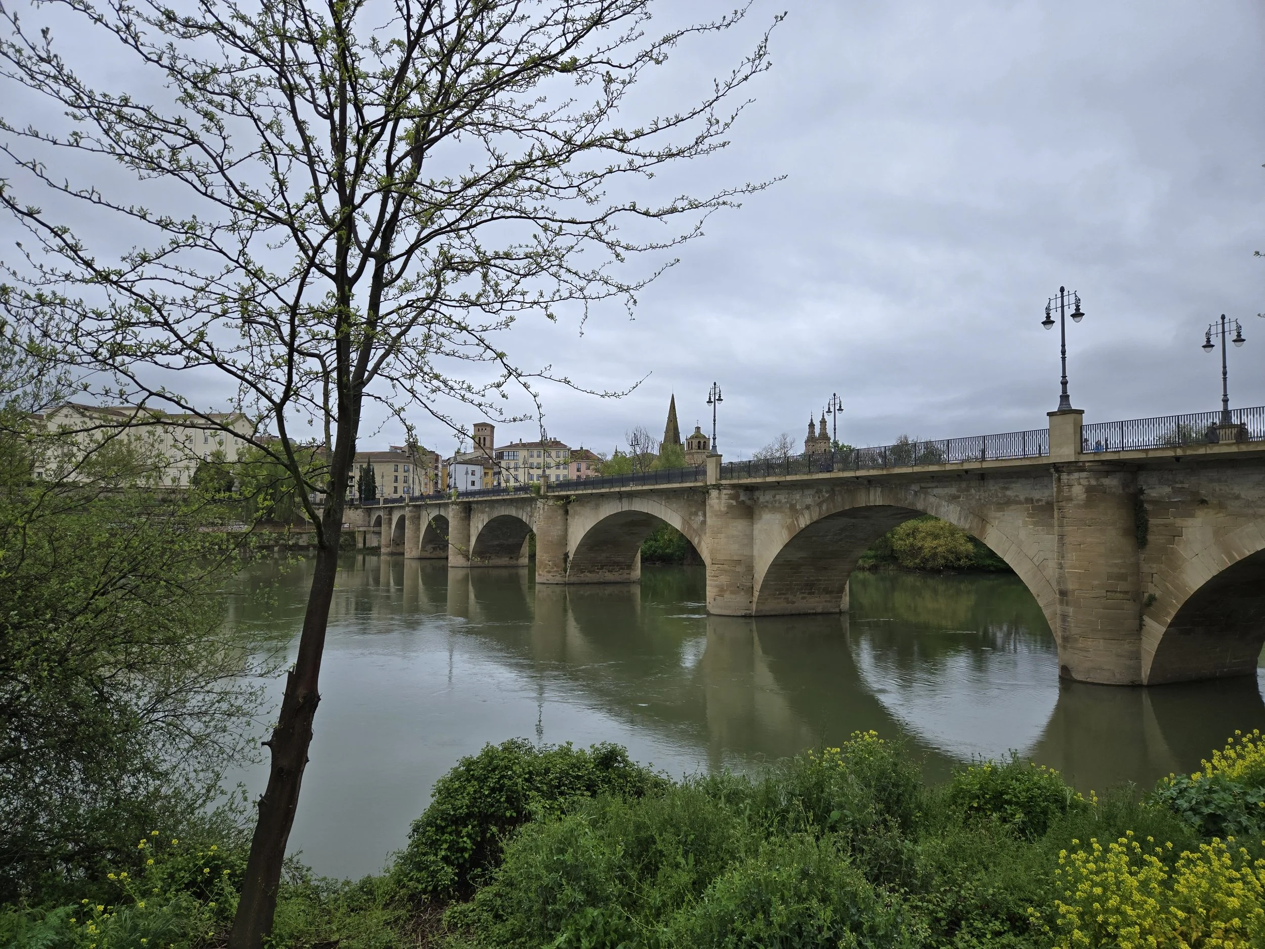Crossing bridge into Logroño