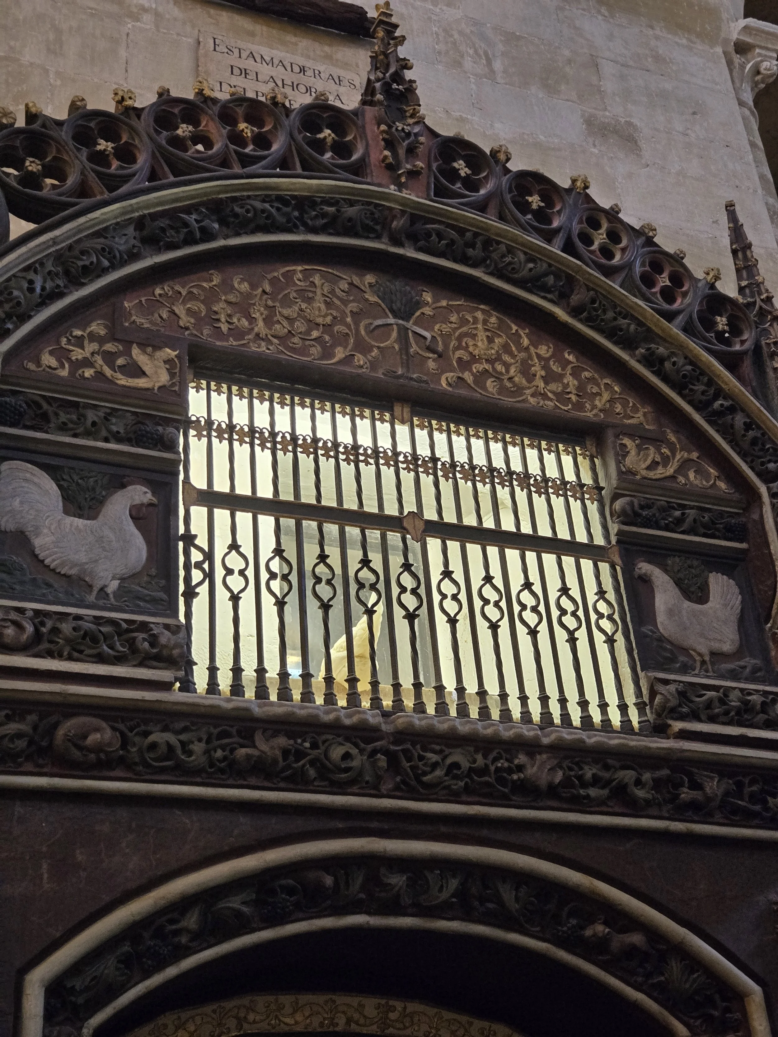 After I had checked into my Albergue (which was rather large compared to ones I’d stayed in recently), I went to tour the cathedral. Unfortunately, I had missed Easter morning service since I was walking. Pilgrims get discounted tickets and this one included the Cathedral and bell tower next door. The Cathedral was massive and gorgeous. It had two very unique things, the first was the tomb of Santo Domingo with artful mosaics along the walls and ceiling. The second was an ornately decorated chicken coop raised above our heads that held a live cock and hen. I read the legend about why it came to be in the Brierley guidebook but it’s still funny to hear a rooster crow from inside a church.