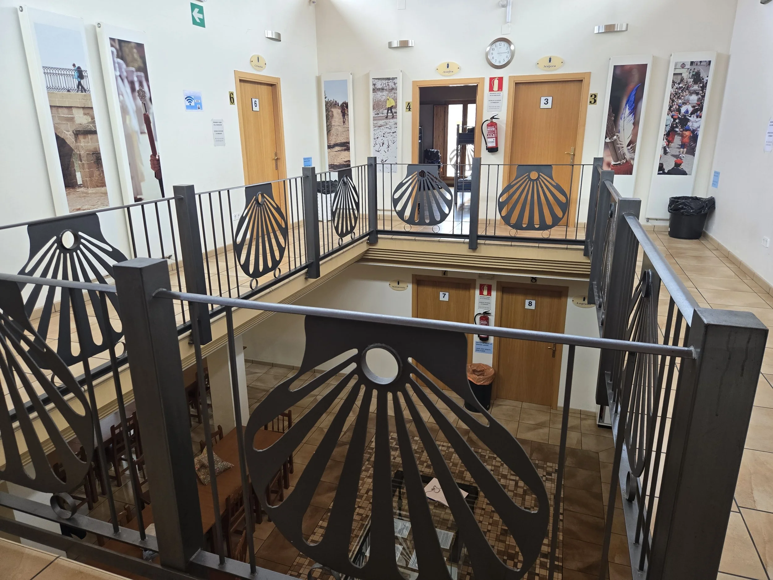 Albergue Peregrinos Cofradía del Santo overlooking the lobby, I’m in dorm 3