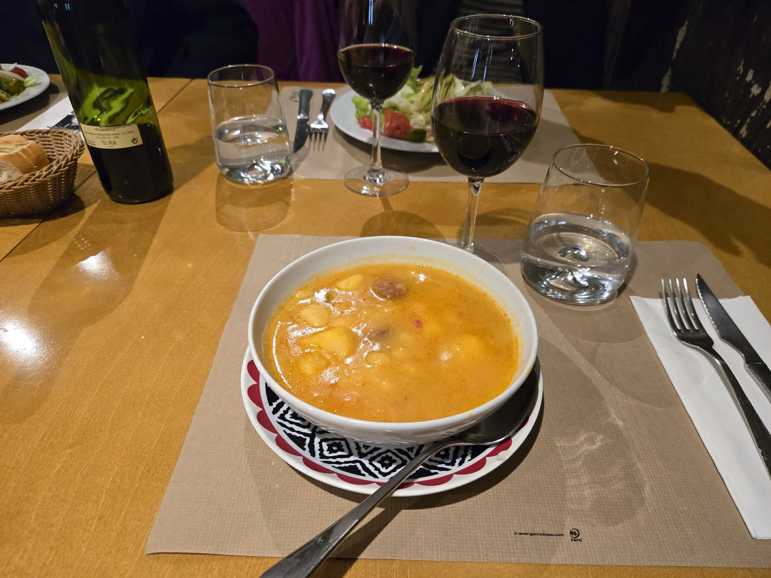 I went back to the lobby of my Albergue and got hot milk from a vending machine to make myself a lavender earl grey latte (still have plenty of tea bags left). Sue had sent me a WhatsApp message asking if I’d like to meet her and Bill for dinner at a restaurant near their hotel which was also close to where I was staying. I met them and Jeff (who I had met all the way back on day one. He works for a Catholic church in the States doing their finances.) at Bar Piedra.