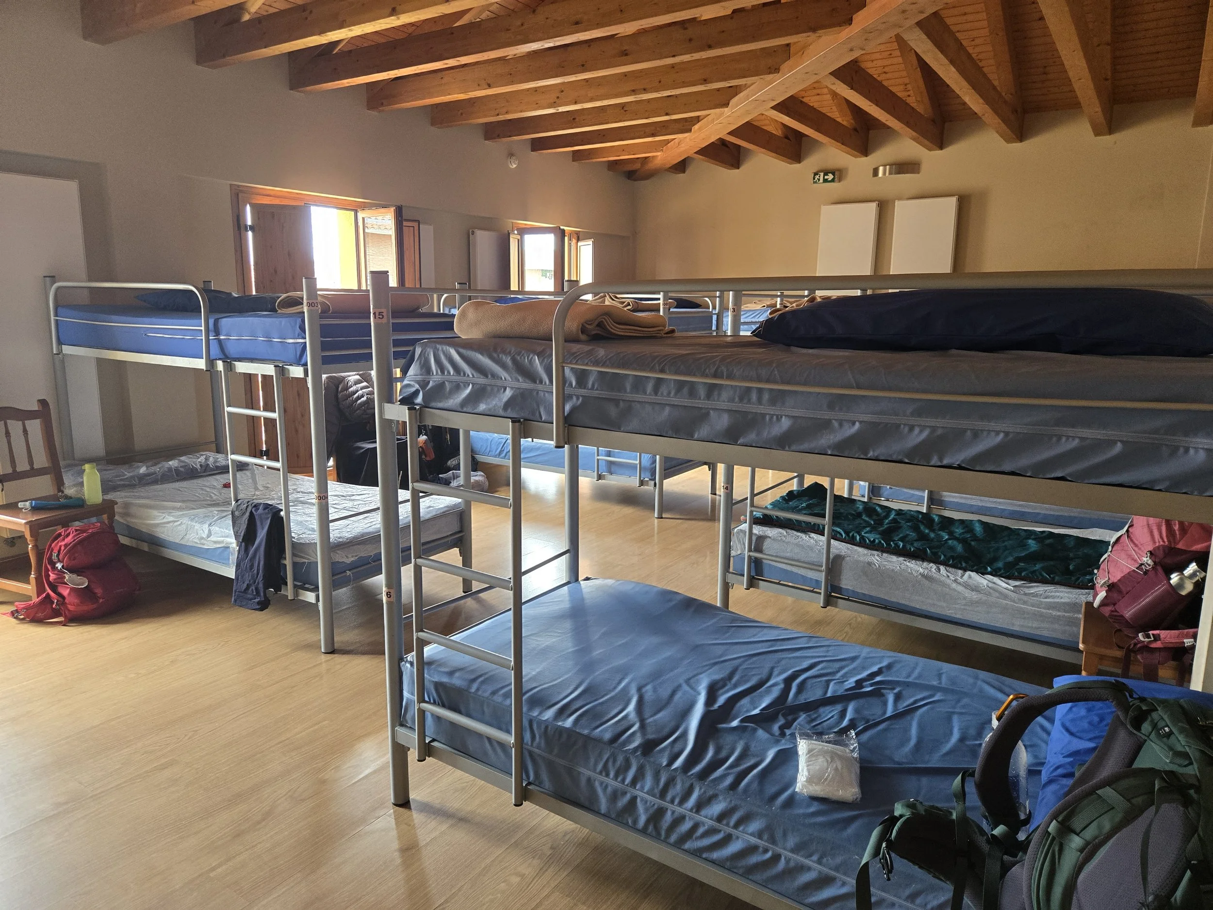 I said goodbye to them all and headed back to my Albergue around 8pm. My assigned lower bunkbed was near the door so unfortunately bright light would shine in any time someone opened the door. But I hung my drying towel as a curtain to block most of the light, and with my eye mask and earplugs was able to sleep fine.