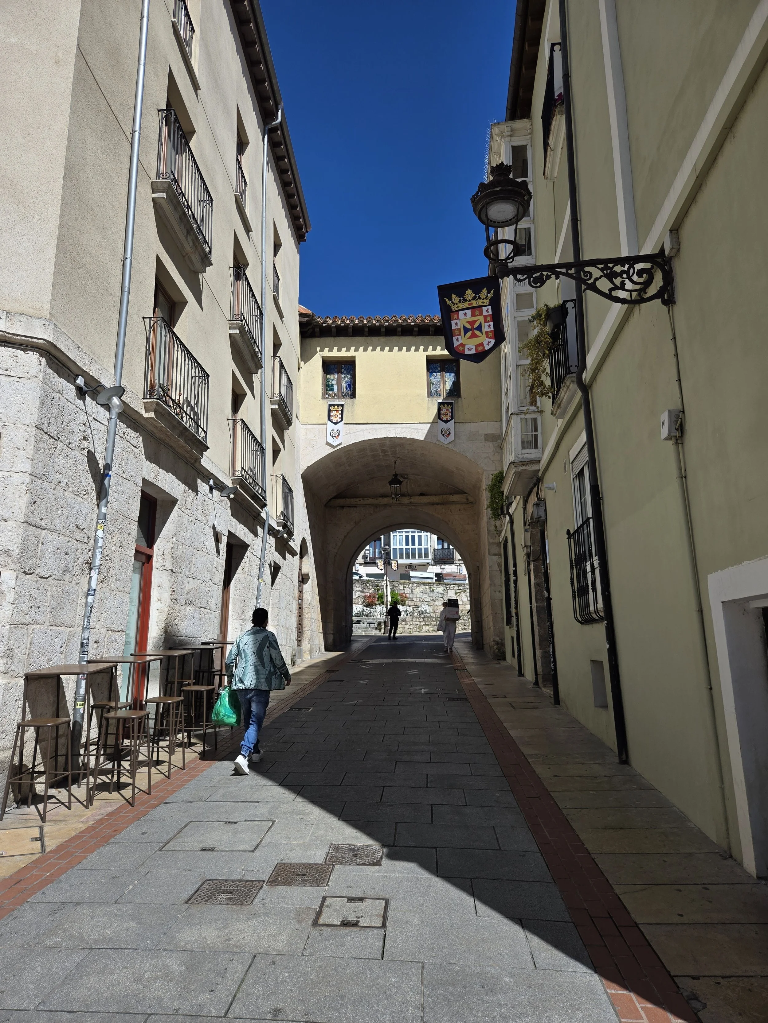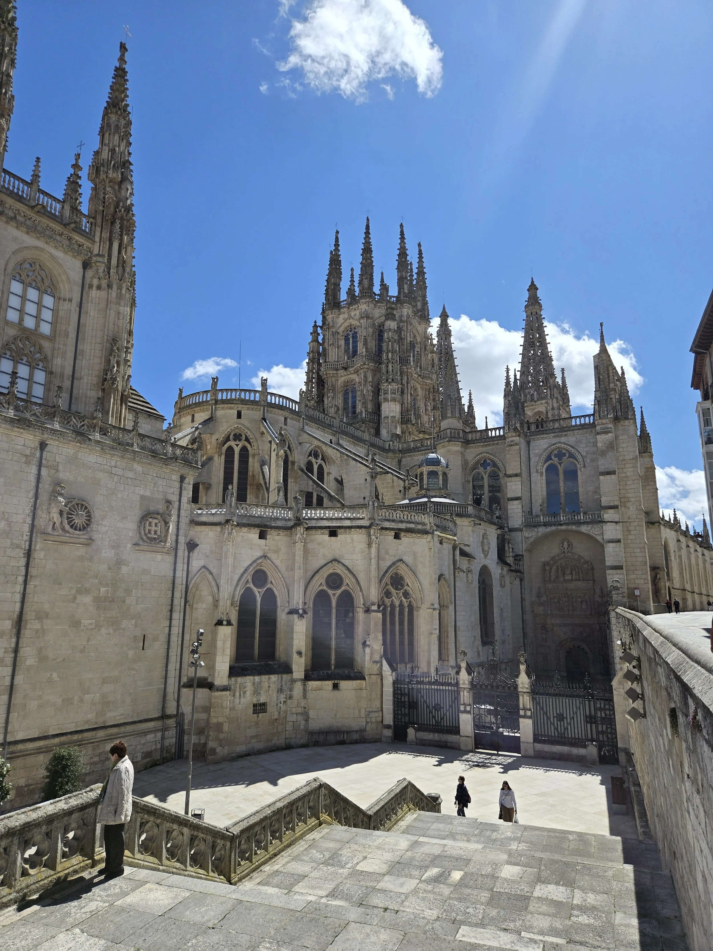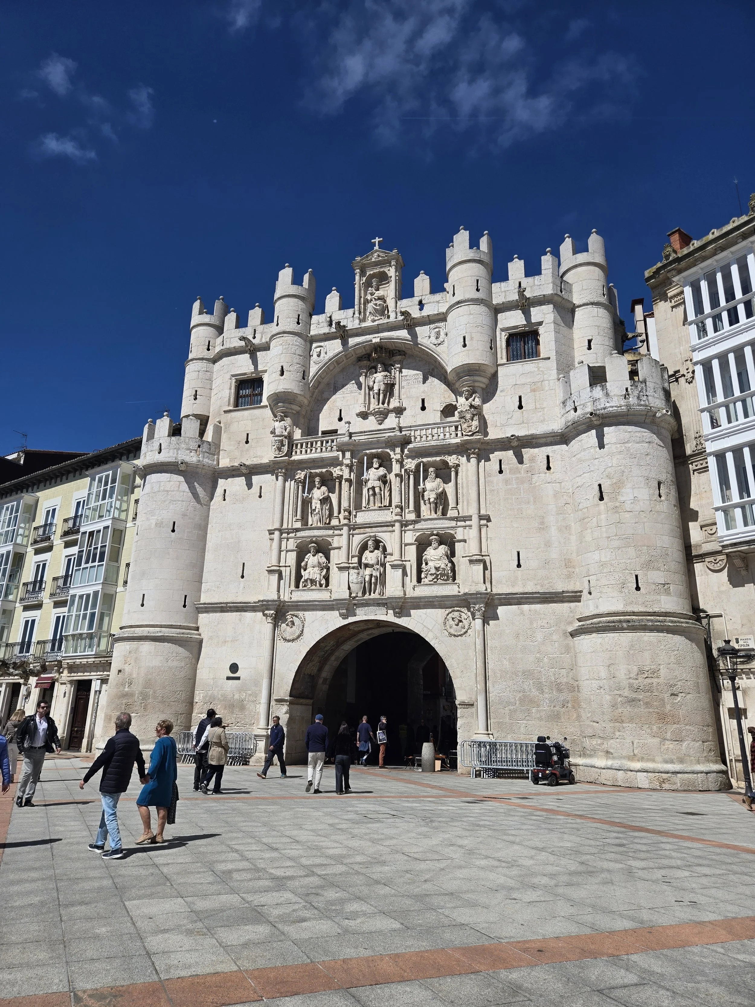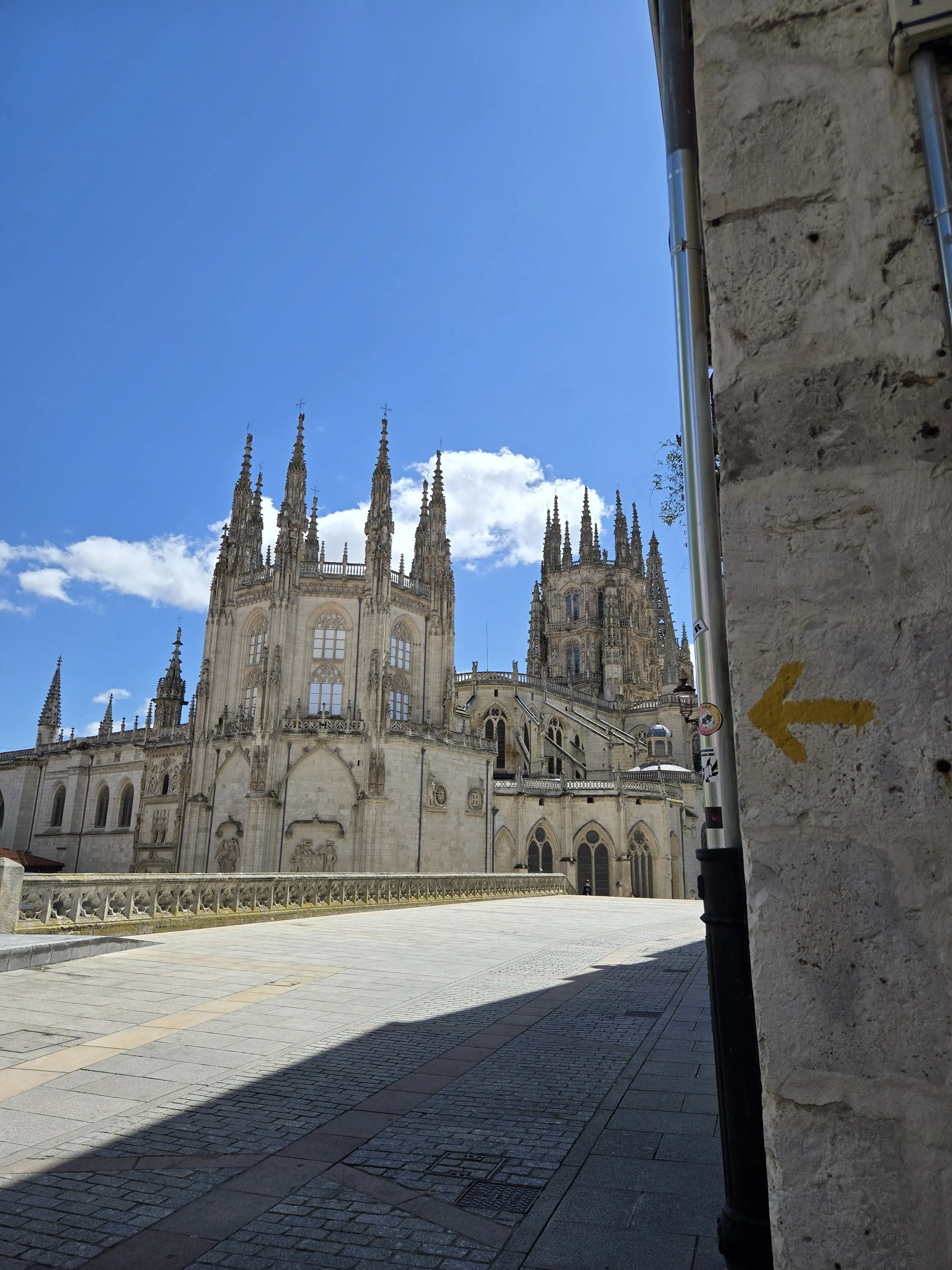 I made it to the Hotel Norte Y Londres and was able to check in early at 10am. This was my first time on the Camino having a whole room to myself and it felt strange. I was able to spread out all my stuff and relax for a bit. I looked up a foot doctor in Burgos I’d seen in a YouTube video from another pilgrim. My blister had filled with fluid again and rather than drain it again myself I hoped I could get a professional to look at it. Google said it was closed today for a holiday (Castilla y León Day) so I decided to walk over tomorrow morning before I left. Around noon I left the hotel to explore. First, I went to the nearby San Gil Abad and San Lorenzo churches then made my way to Plaza Mayor, through the Arco de Santa María to Burgos Cathedral.