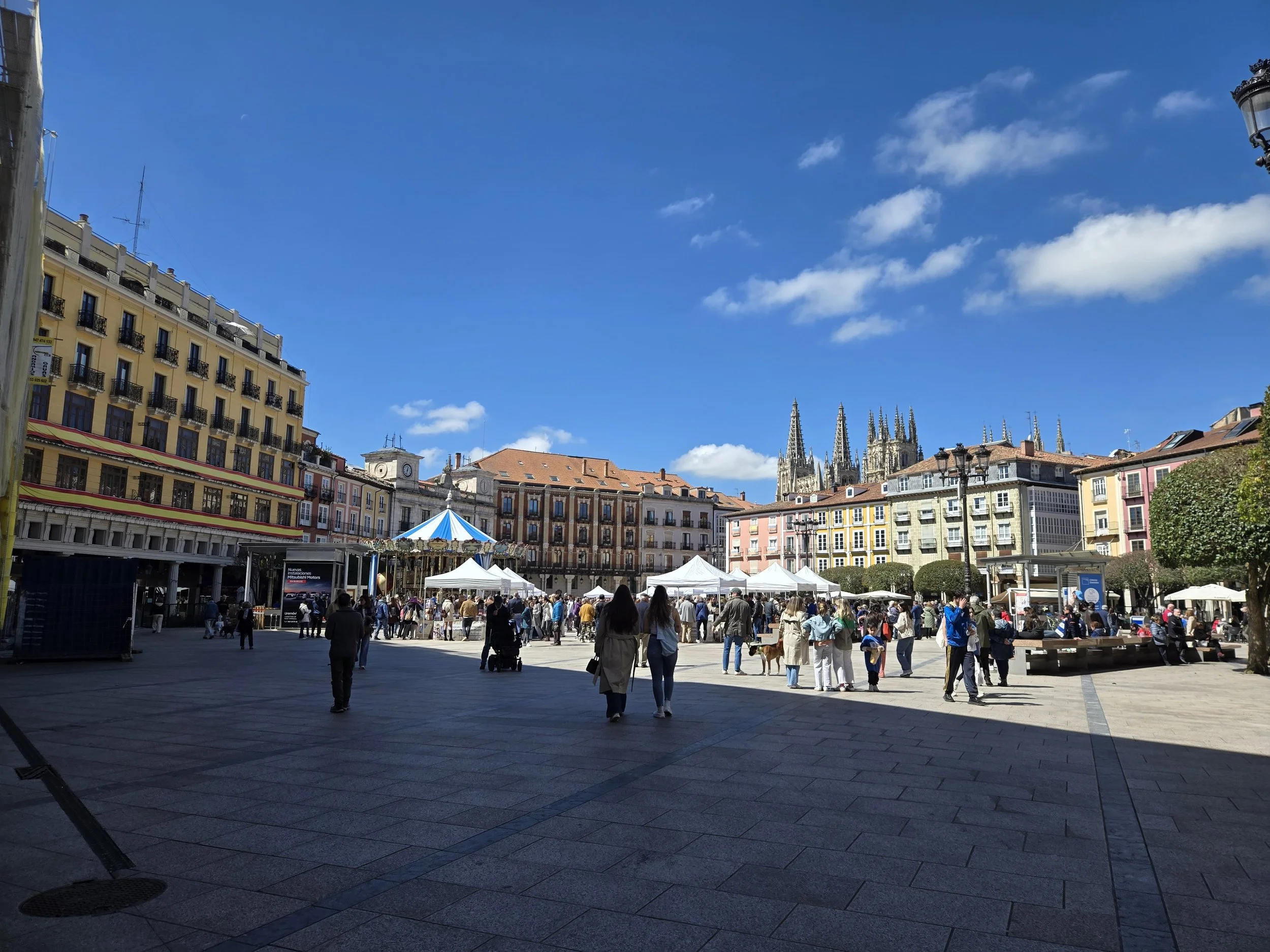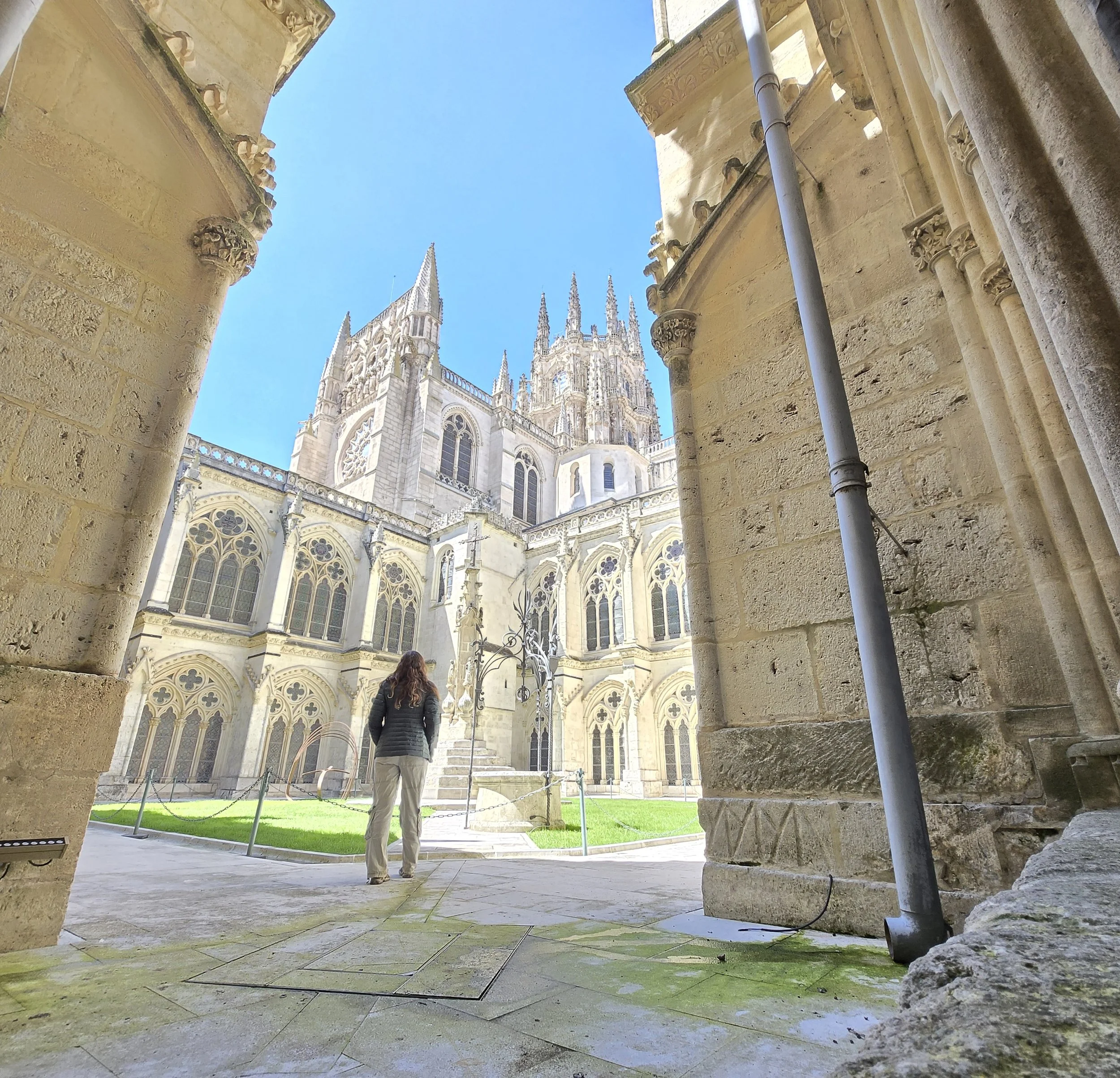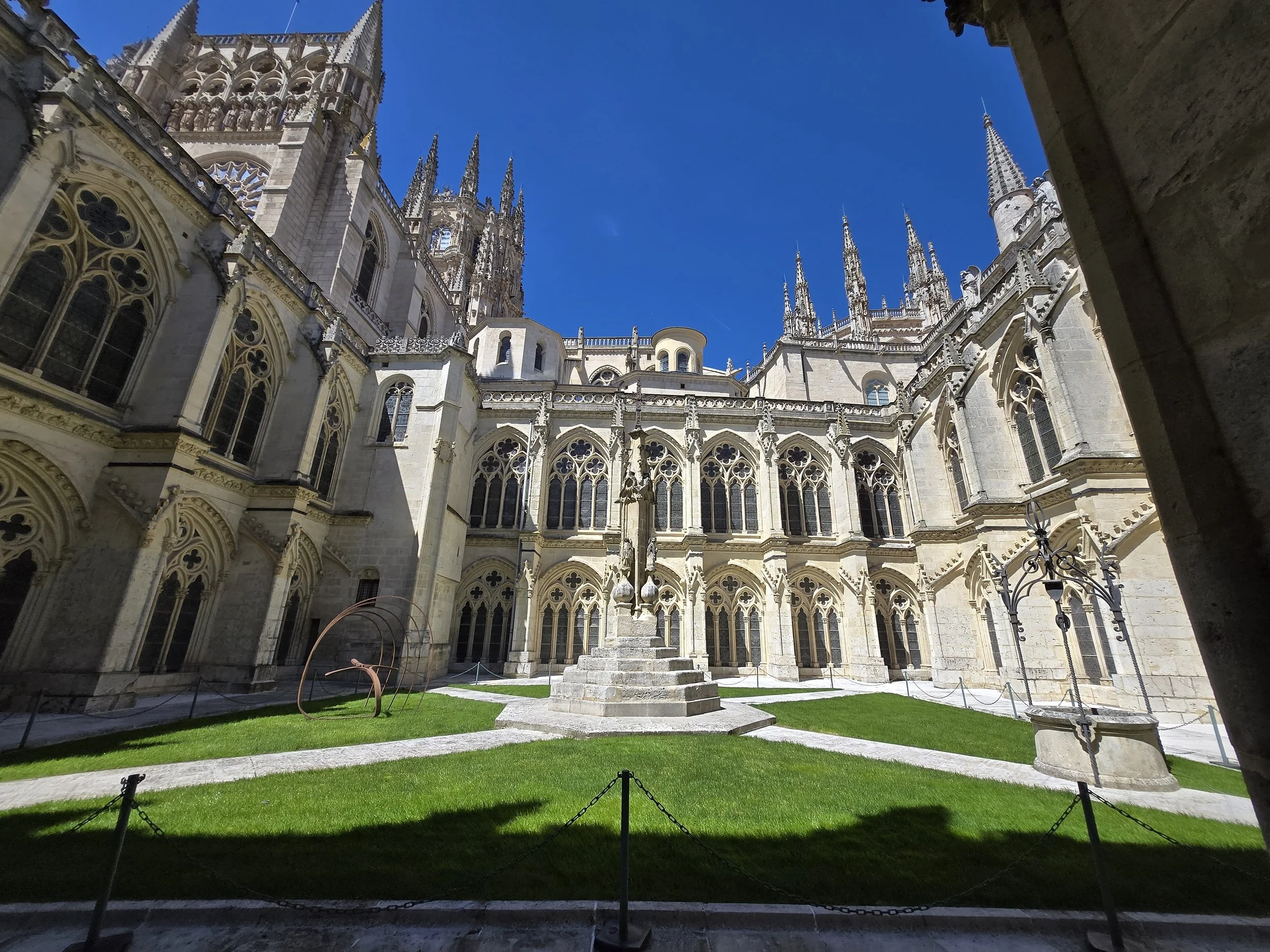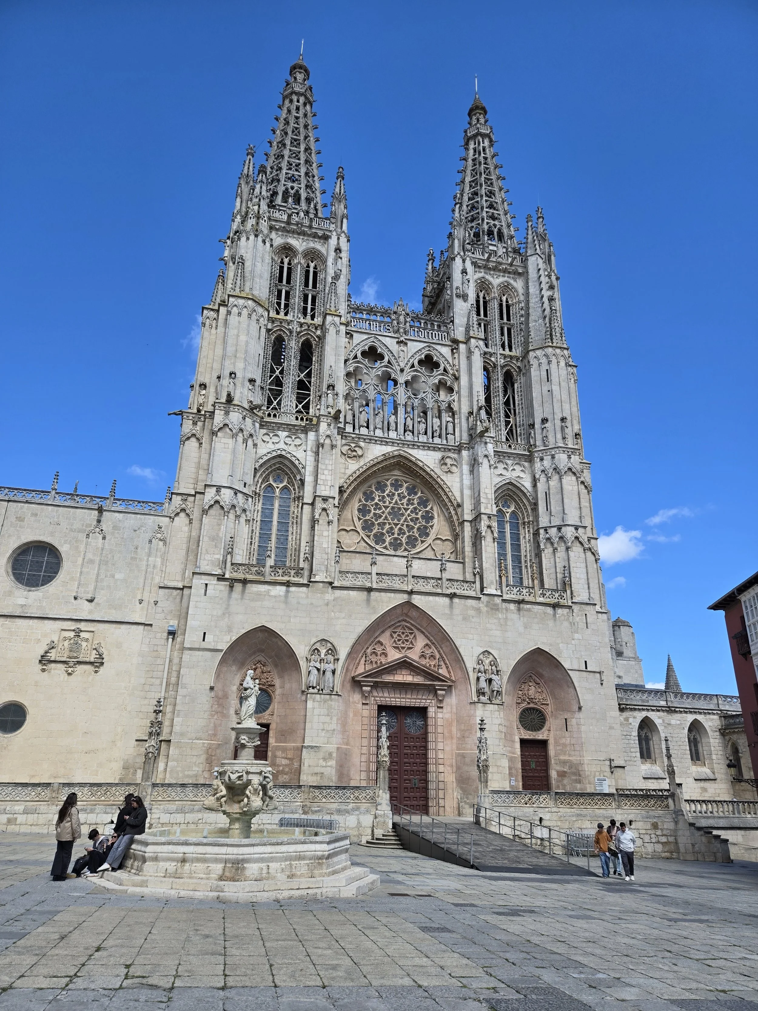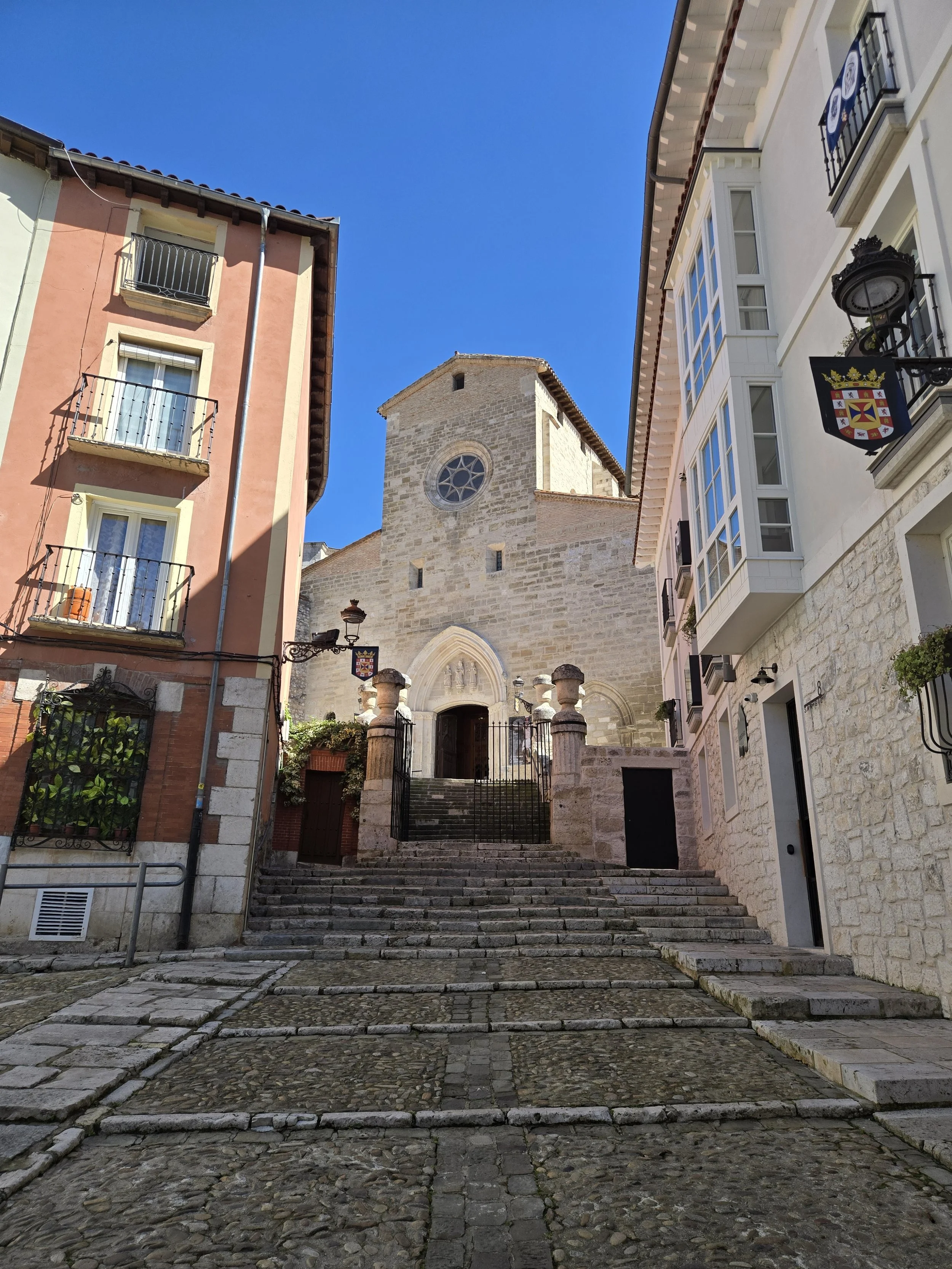 I made it to the Hotel Norte Y Londres and was able to check in early at 10am. This was my first time on the Camino having a whole room to myself and it felt strange. I was able to spread out all my stuff and relax for a bit. I looked up a foot doctor in Burgos I’d seen in a YouTube video from another pilgrim. My blister had filled with fluid again and rather than drain it again myself I hoped I could get a professional to look at it. Google said it was closed today for a holiday (Castilla y León Day) so I decided to walk over tomorrow morning before I left. Around noon I left the hotel to explore. First, I went to the nearby San Gil Abad and San Lorenzo churches then made my way to Plaza Mayor, through the Arco de Santa María to Burgos Cathedral.