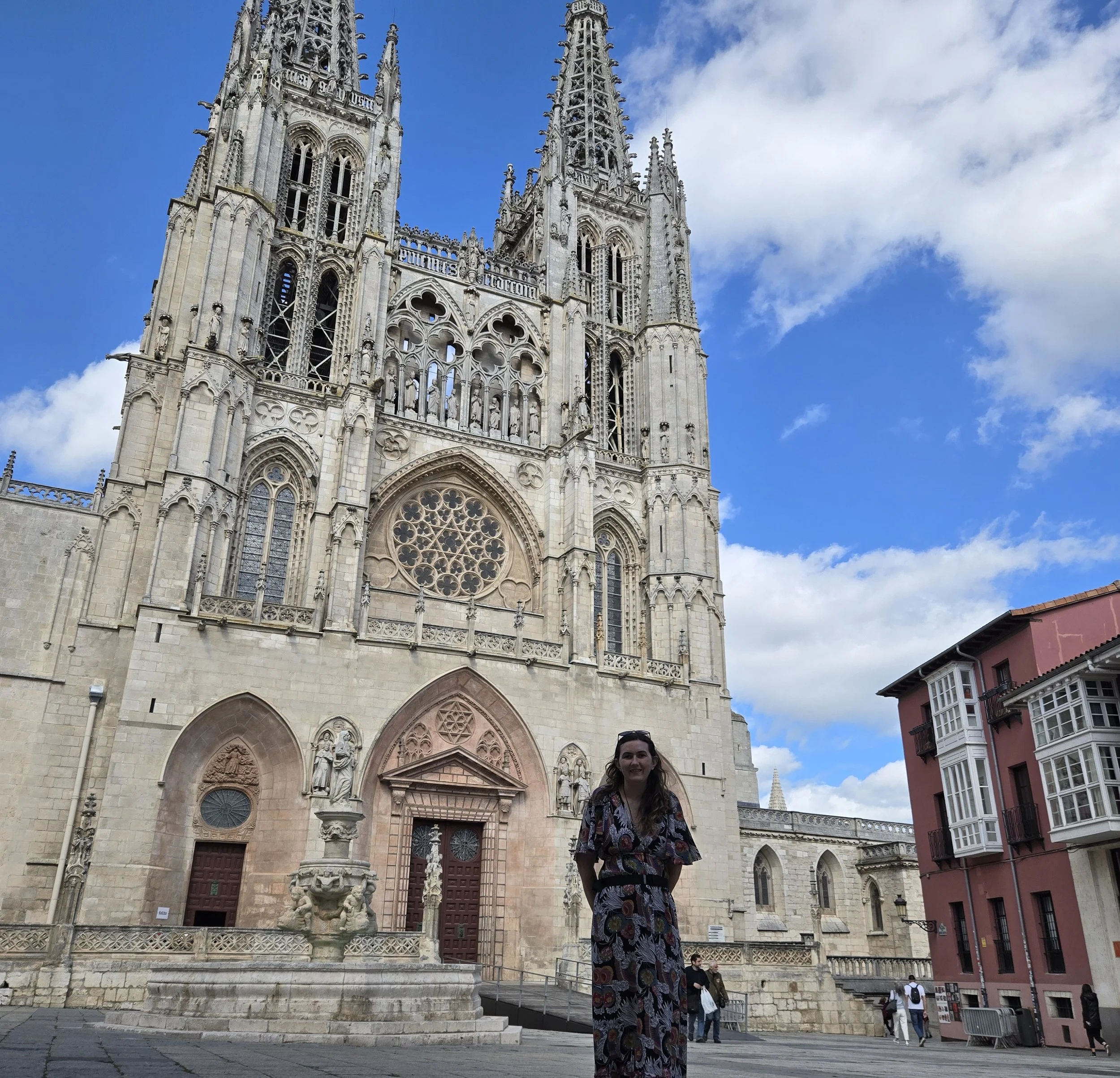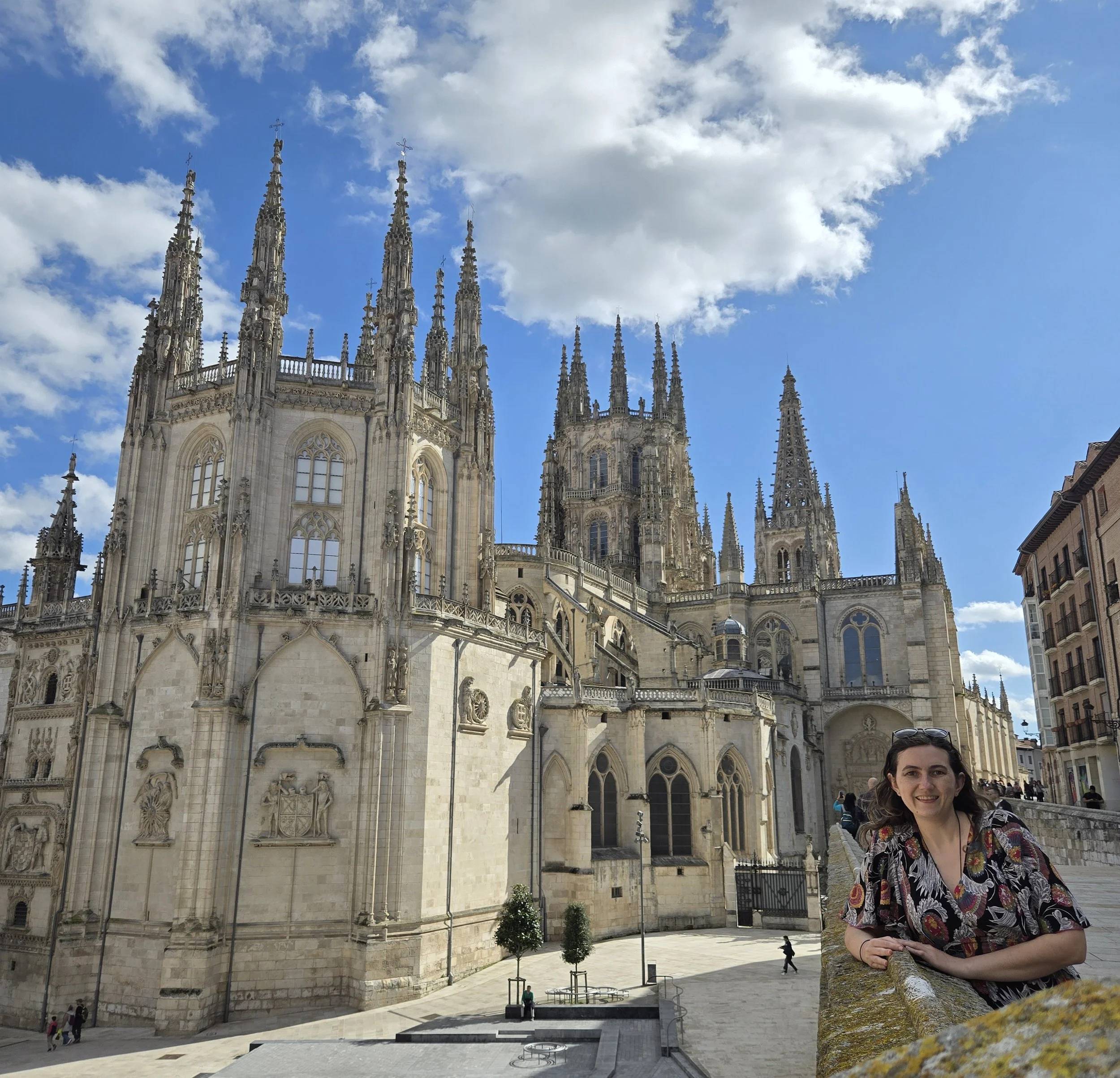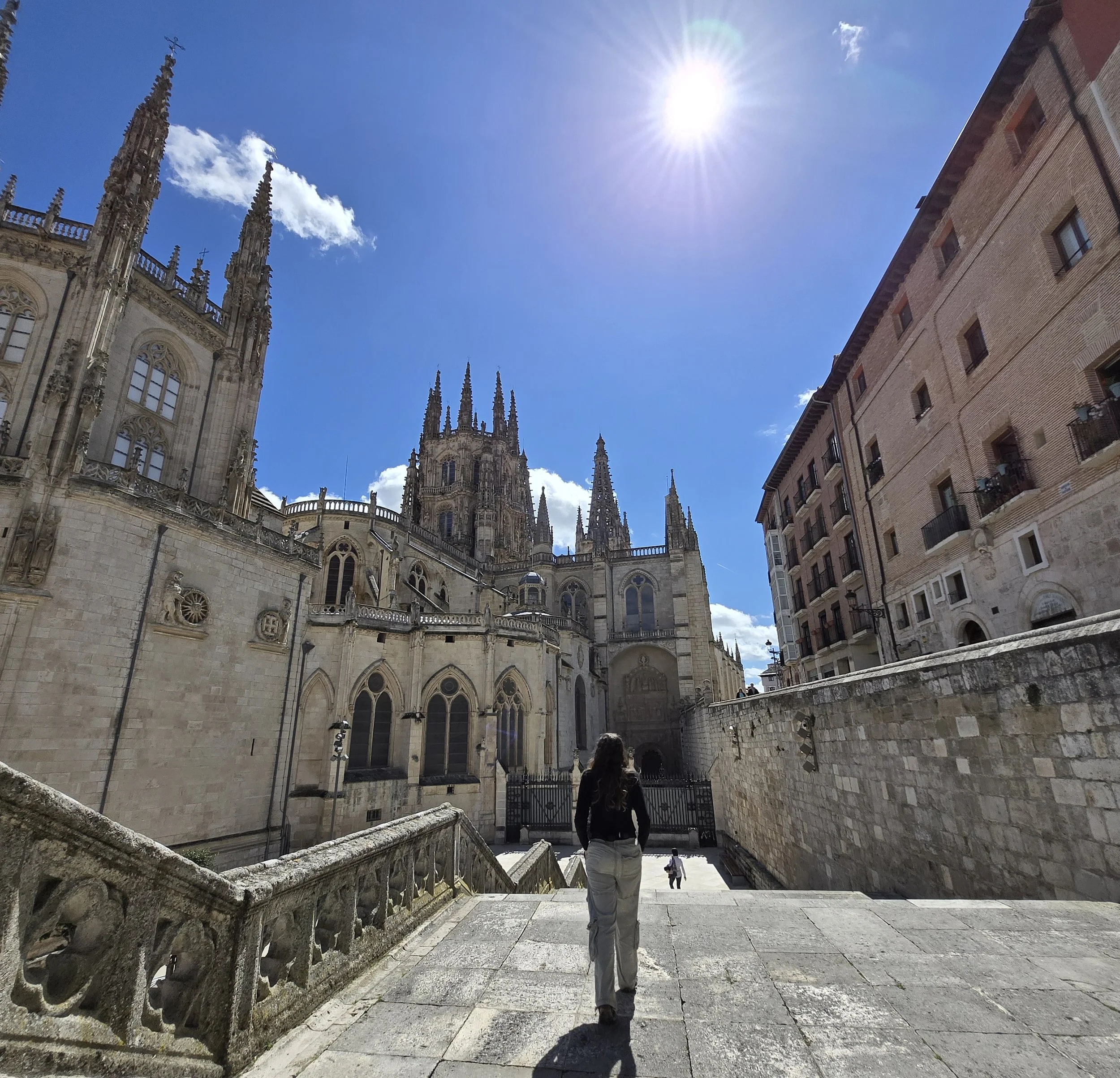 Afterwards, I circled the cathedral, trying to see every one of its different sides and ran into Cassie and Ryan. Next, I got a new credential at the municipal Albergue since my old one was almost full. Then I tried searching for bath bombs as a treat for later but many stores closed were for Castilla y Leon Day.