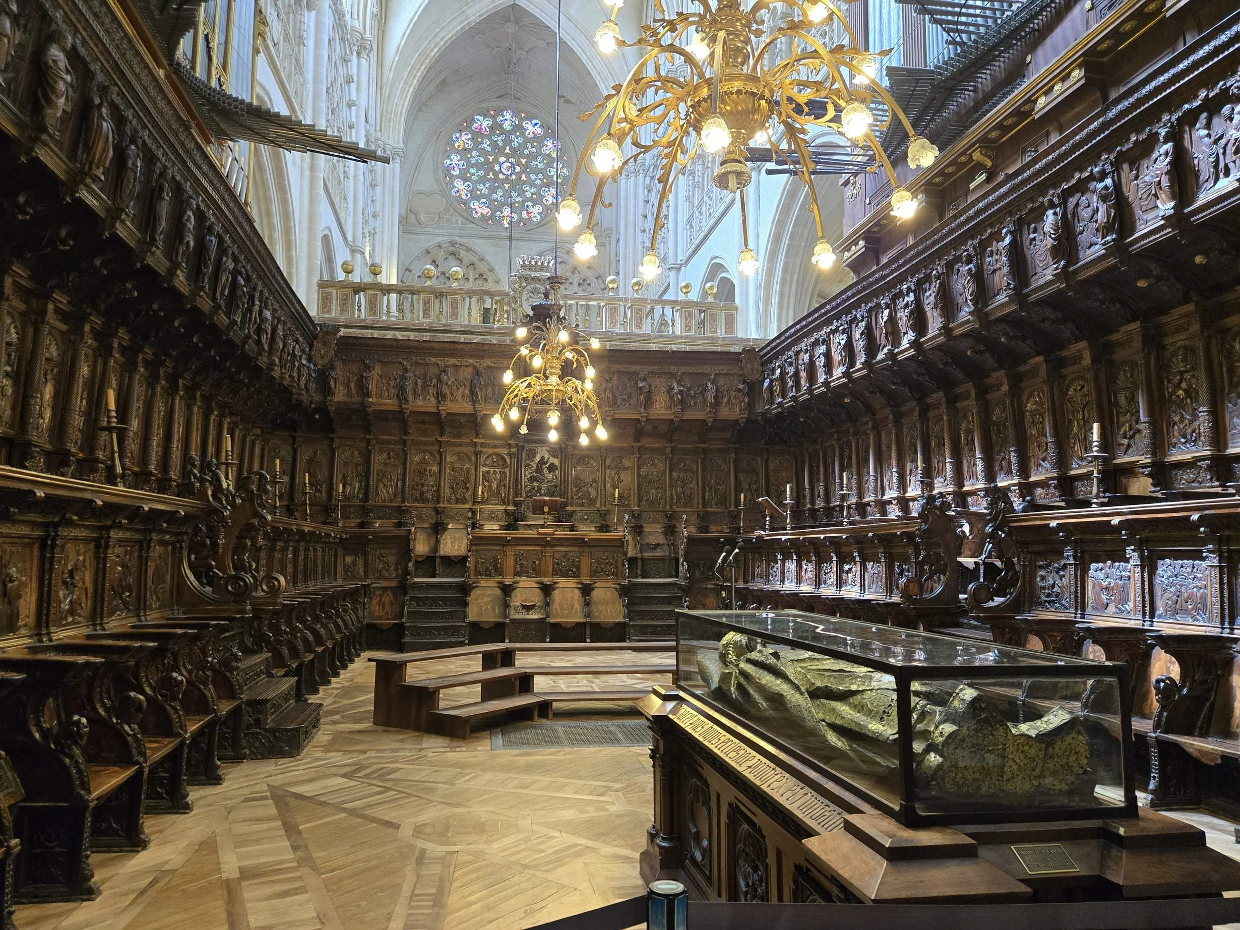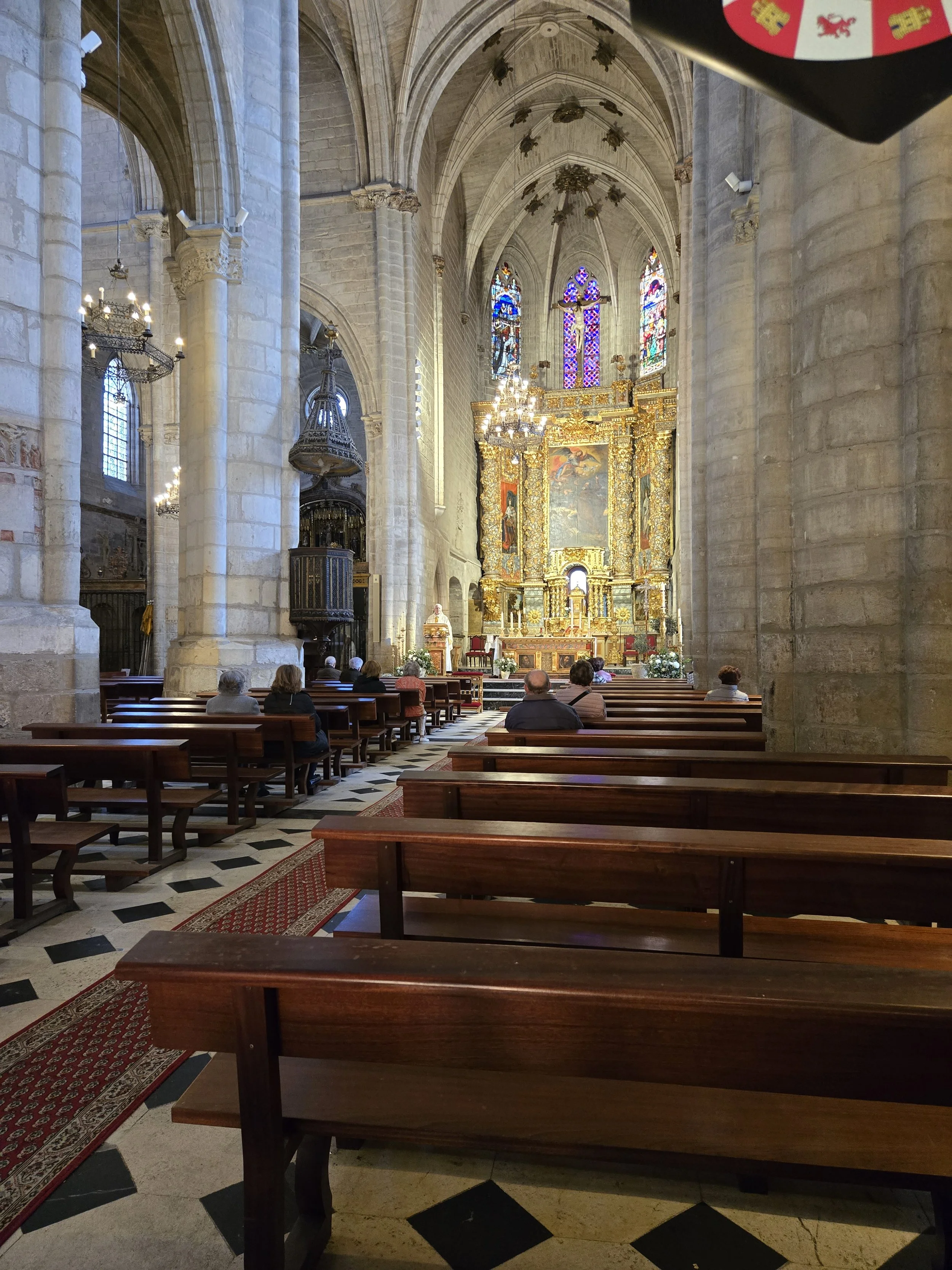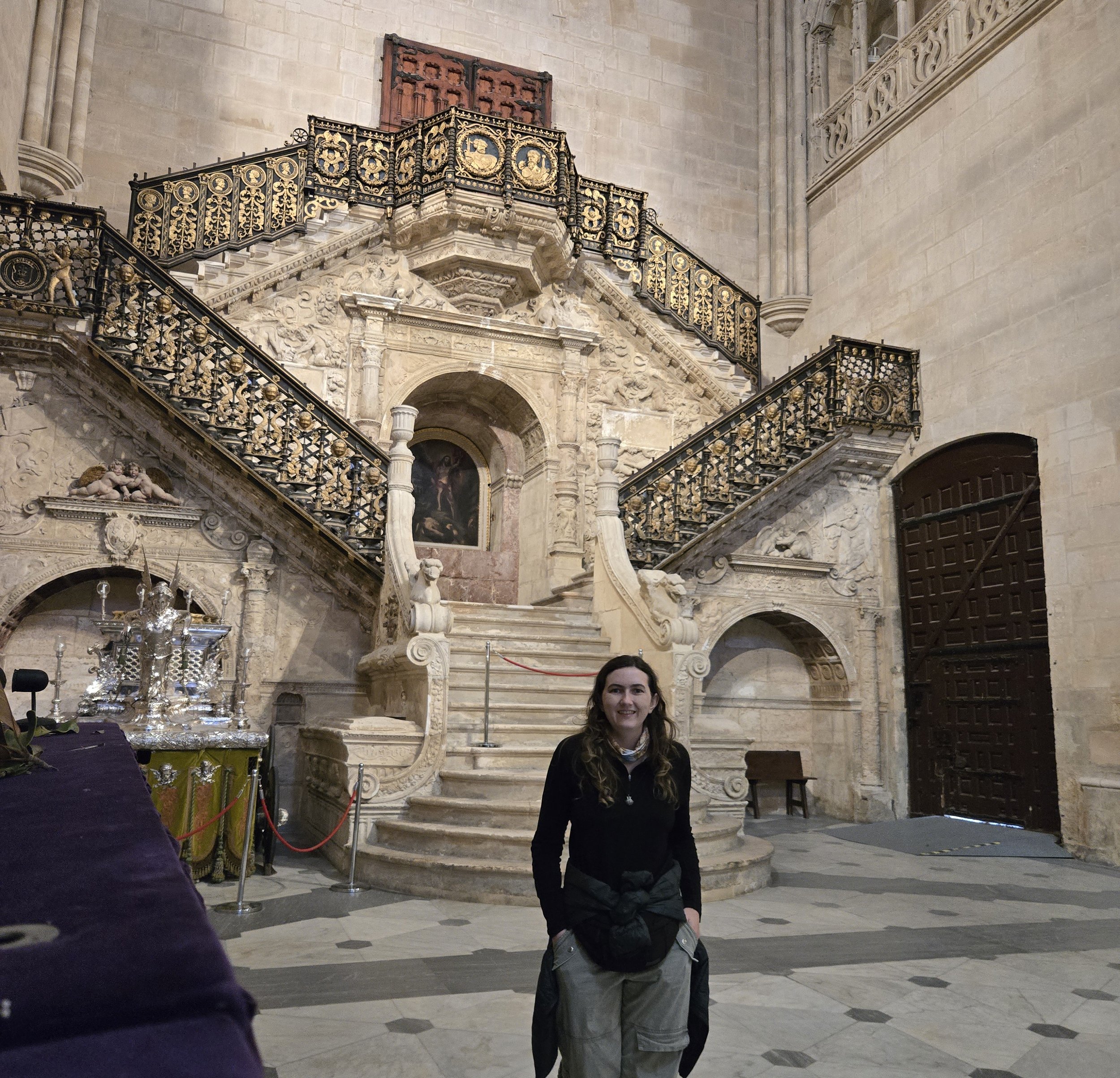 The scale of the Cathedral was unlike anything I’d seen before, it dominated the plaza and towered over every other building nearby, almost too bright to look at in the sunlight. I got my discounted pilgrim ticket and spent forever walking around the inside. The interior was equally massive with so many intricate stone carvings. Aside from the main nave, there were dozens of smaller side chapels, a cloister, and even a museum. I saw Pam there too, walking around.