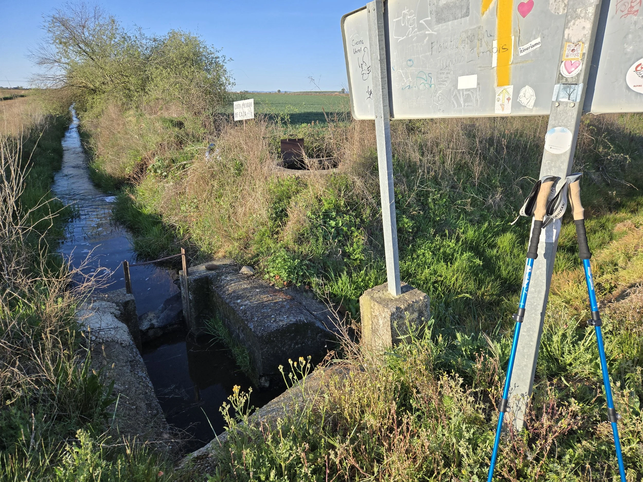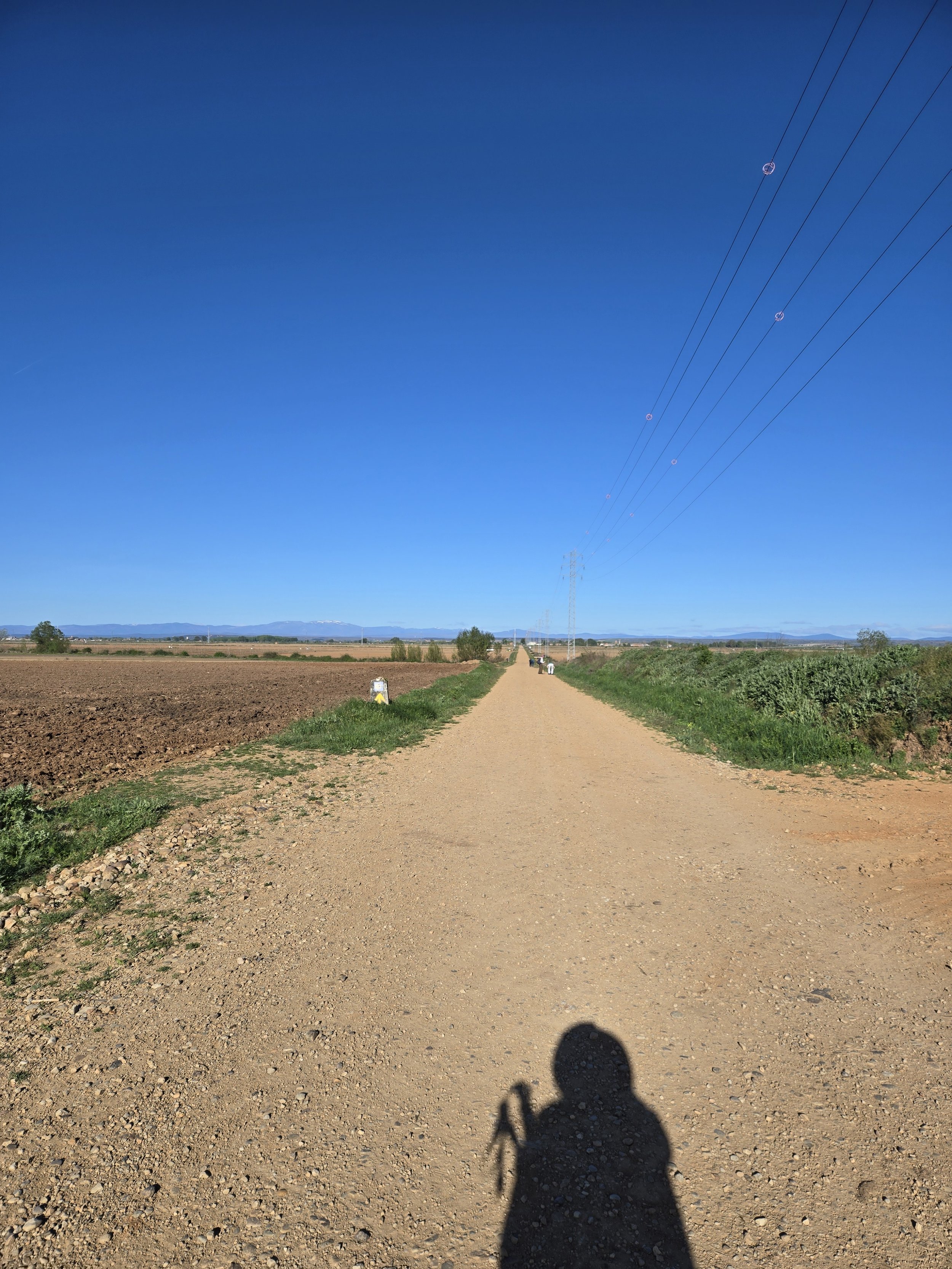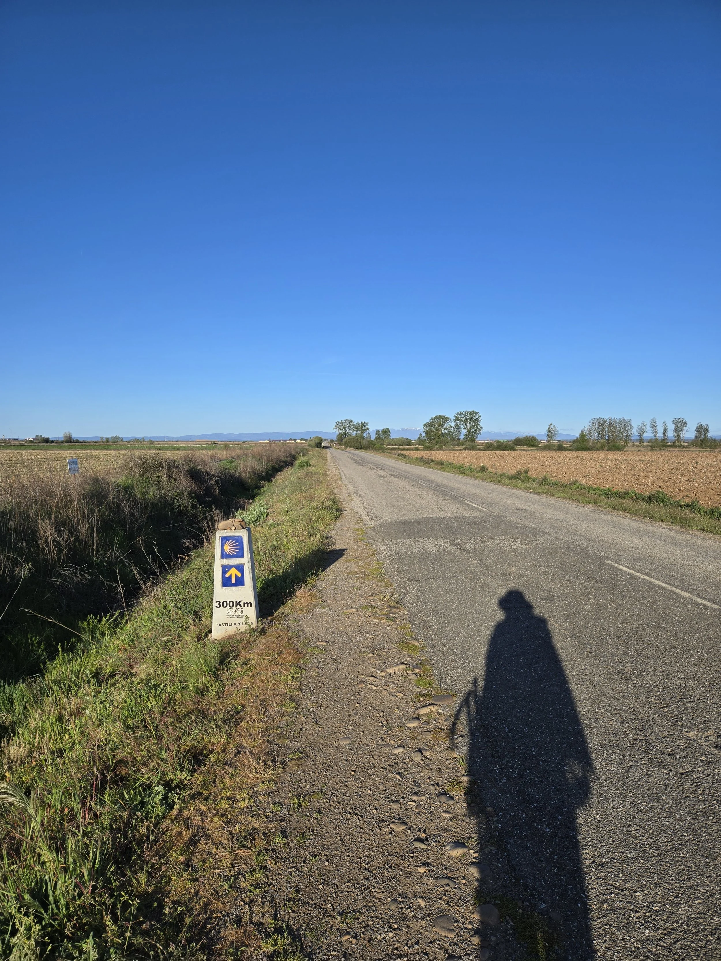 As a last resort, I changed my right foot into one Teva sandal and immediately there was no more rubbing. The balls of my feet still ached from walking on so much asphalt yesterday, so I continued to wear my left Hoka since it provided more cushion to that part of my foot. I continued to walk with one shoe and one sandal until I reached the first town (10km from Villar de Mazarife). This probably looked ridiculous, but plenty of pilgrims have done stranger things on the Camino. No one I passed seemed to notice anyway. Luckily, the dirt roads remained mostly dry so I didn’t have to deal with any mud at least.