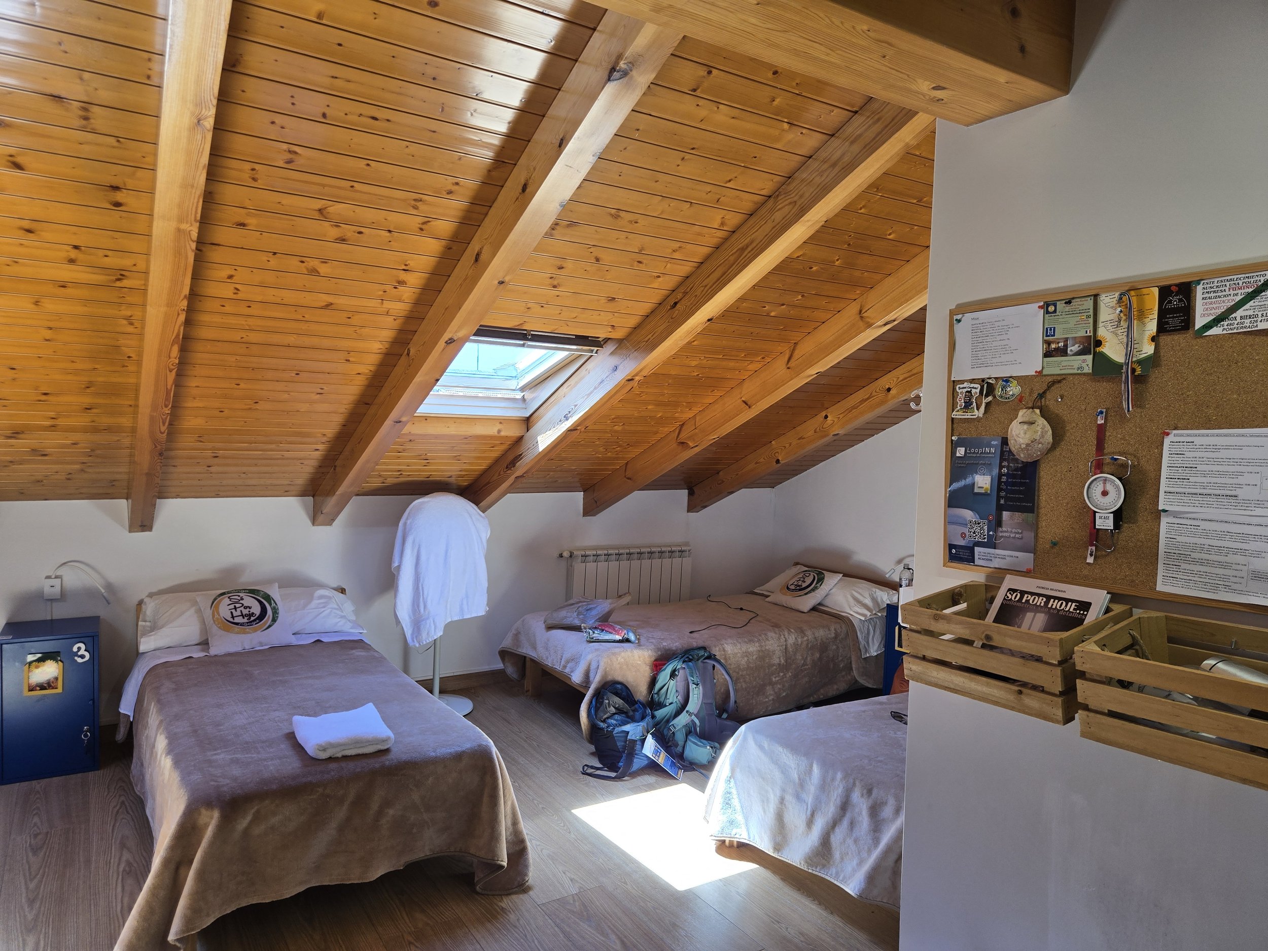 After checking into Só Por Hoje, I took a quick shower, changed, then ate lunch in nearby Plaza Mayor at a restaurant the host (Patricia) recommended. Patricia is also the first person I met who uses the same Galaxy Z flip phone and we talked about how much both of us love it. Then I spent the rest of the afternoon at the Albergue resting and keeping my right foot elevated. The beds were super comfortable which was a big reason I chose to stay here. I also tried to book a horse ride up to O’Cebreiro on May 1, but the guide said he was full that day. He told me I could book on April 30 and I said yes, but that means I need to take another bus/taxi to get there a day earlier. Unexpectedly, Joe walked in and we had a laugh about how I was able to “beat him” to Astorga, and the fact he happened to randomly choose the same Albergue since he never books anything ahead.