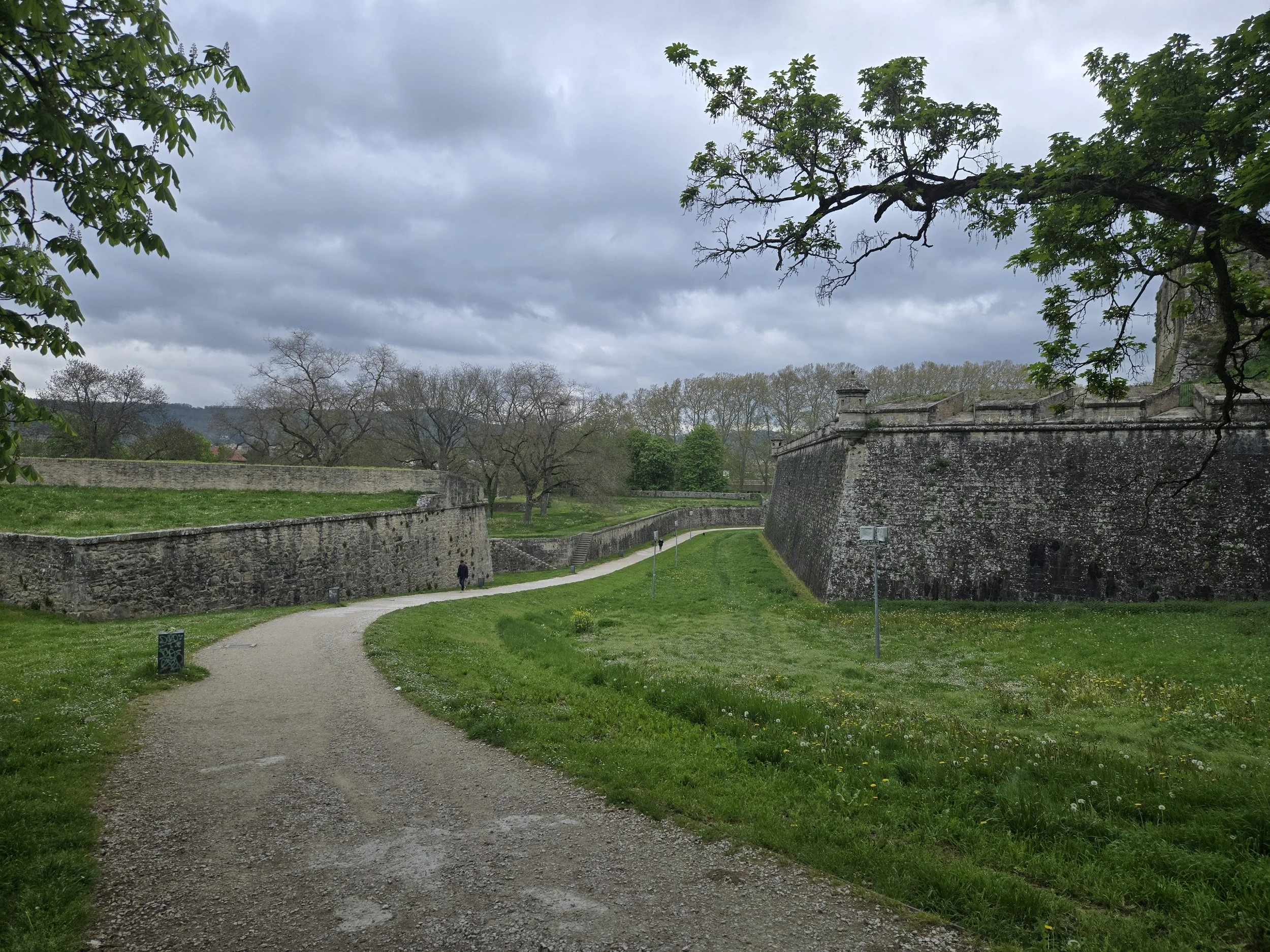 We started chatting and I learned his name was Robb and he was a special education teacher from county Cork in Ireland. We walked together through the last two towns before Pamplona, the suburban section along sidewalks I was hoping to avoid. However, our conversation was so engrossing (mainly about the different education systems in Ireland, the USA, and Thailand with a focus on special needs students) that I hardly minded. We both stopped just outside the towering walls of Pamplona to eat a protein bar and we met Doug from the UK who was also resting on our bench. After that, we said goodbye and went to our separate Albergues.