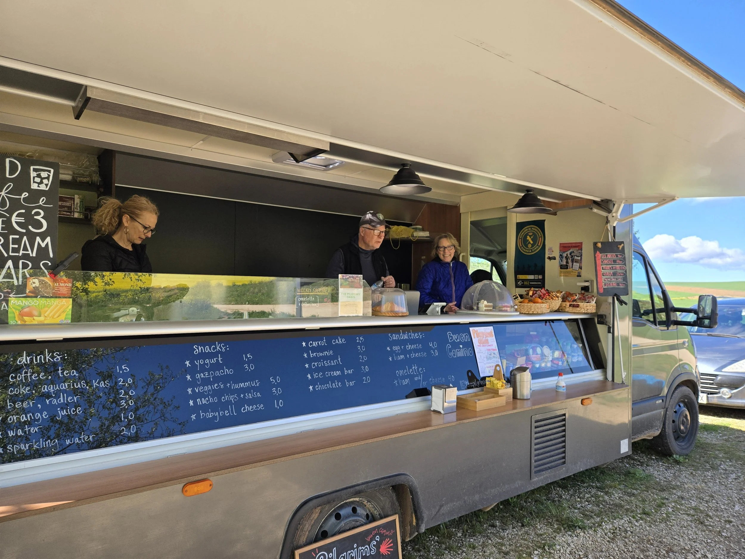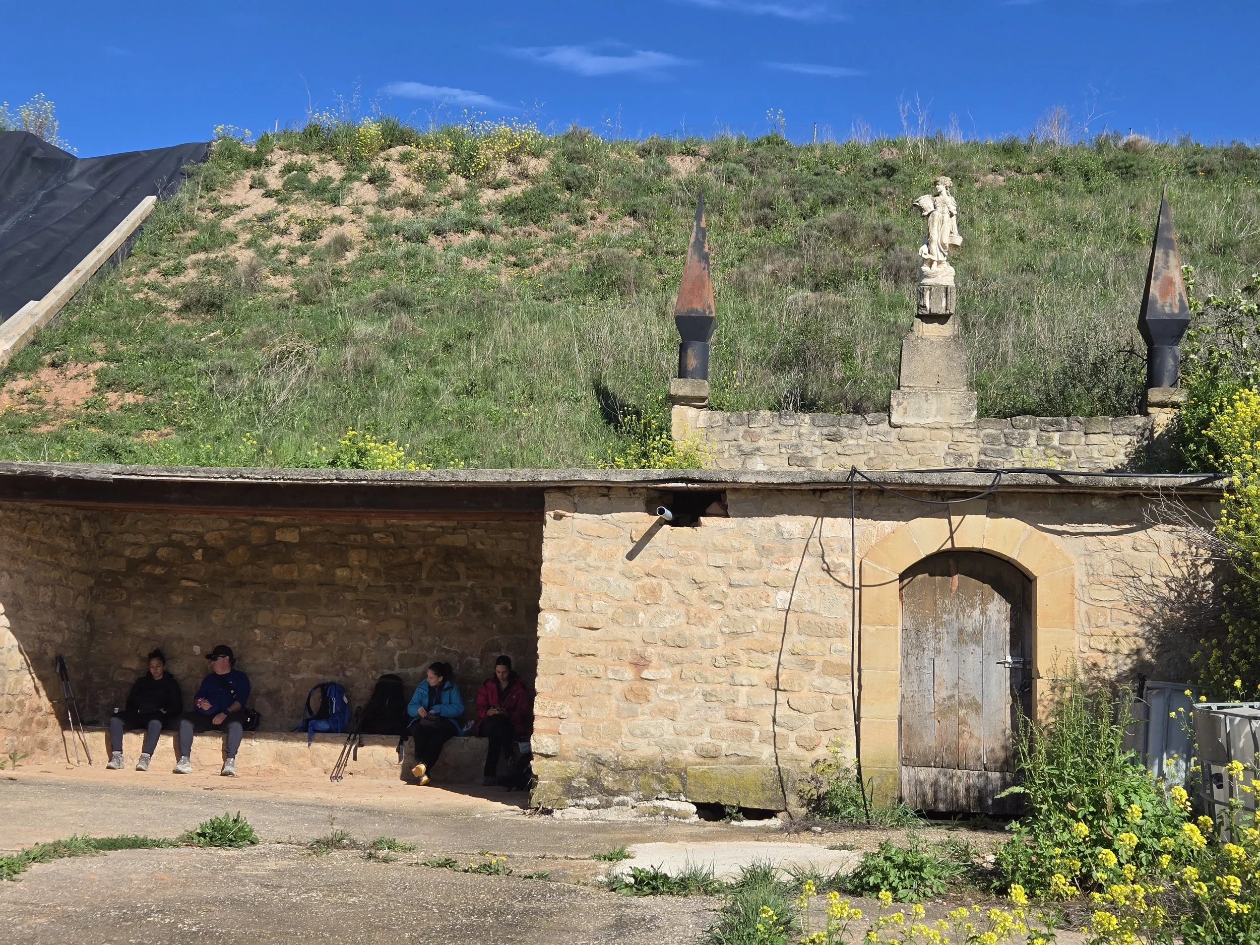 The sun was shining enough for me to get out my sunhat and sunglasses for the first time this trip. While walking I met Lisa from the Netherlands. I stopped at Pilgrim Oasis food truck at the perfect time for a brief rest. I chatted with the volunteers and learned they were from Canada and the US and their church ran this food truck and a café called Pilgrim’s Oasis in Viana (where I’d be staying tomorrow night). I got orange juice and ate my pastry from earlier. While sitting under the trees, I met a couple of Irish guys and briefly saw Peter, Carolyn, Anna, Nigel, Bill & Sue.