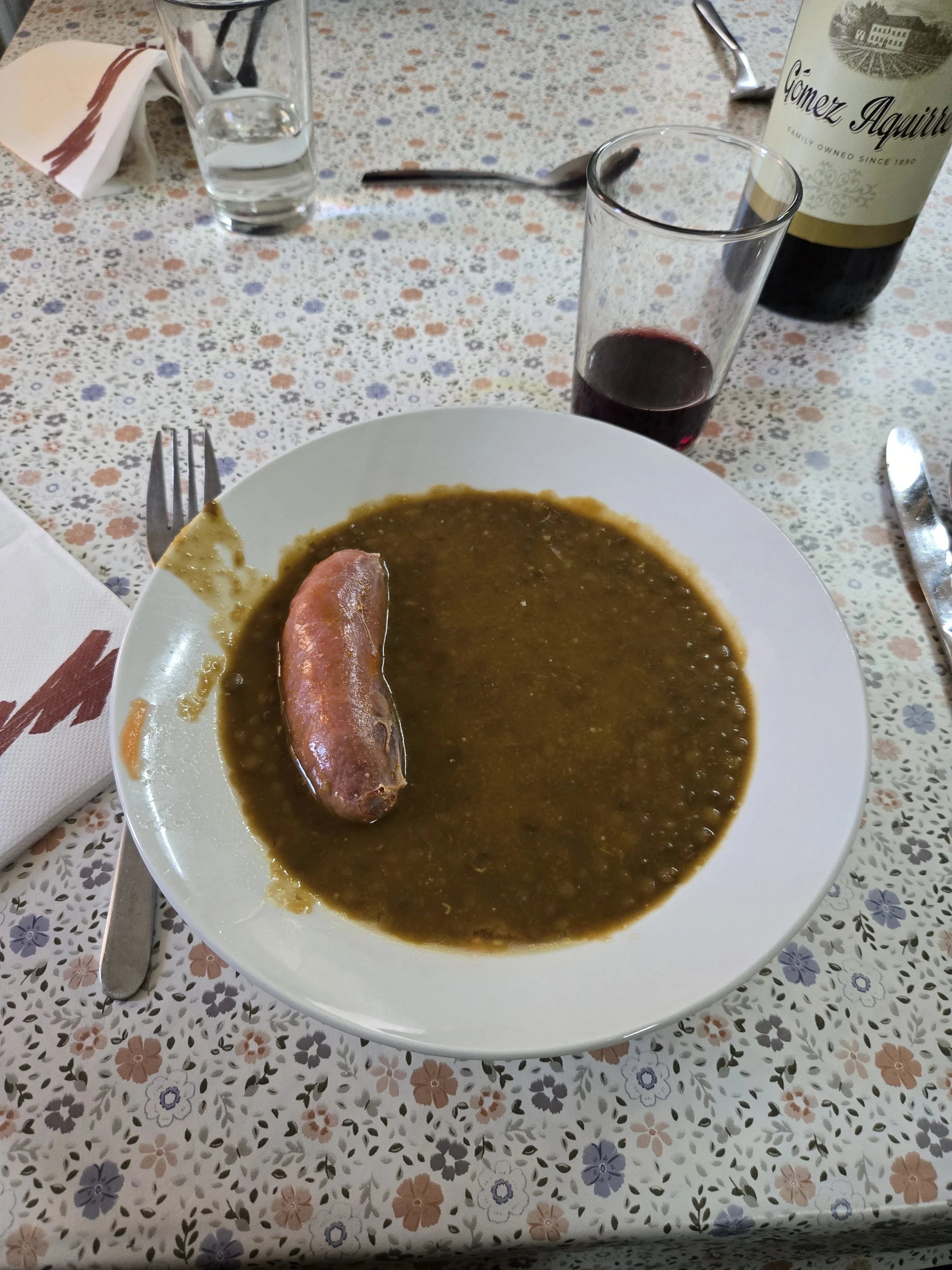 I went back to Casa de la Abuela to research upcoming walking days and booked a hotel in Burgos so I could enjoy my own room and bathtub. While sitting in the lobby, I saw three brothers arrive who were all in their 80s and were walking in honor of their fourth brother who had recently passed. Absolutely incredible that they are walking the Camino at that age! At 6:45pm we ate a homemade communal dinner in the downstairs kitchen/lobby (salad, bean soup with sausage, bread, and ice cream).