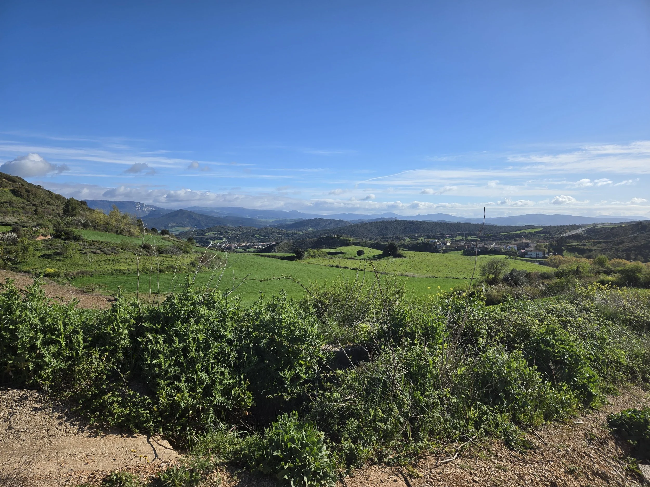 There was a fork in the road with two alternative Camino routes and I helped a German man walking with his twelve-year-old son identify the main route using the Buen Camino app. I continued on uphill feeling pretty good until the town of Azqueta where I listened to my body to rest on a bench to eat my banana. Continued up to the high point with only a little discomfort (the empty pack helped). The walk down from Villamayor de Monjardín was lovely and I hit my stride.