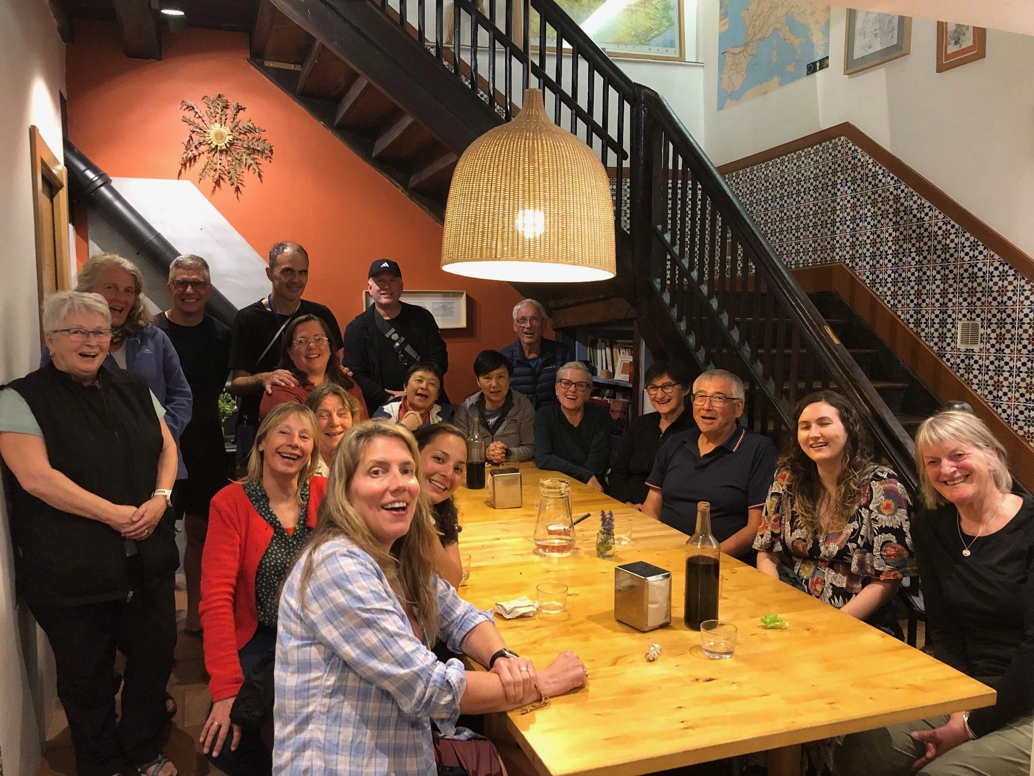 I returned to the Albergue, took a shower before dinner and settled in. At 7:30pm we had a communal dinner cooked by our Basque hosts (Fleur) that was wonderful! They also taught us a bit of history of the Basque region and the Albergue. We played a name/ball game and shared a bit about ourselves and why we are walking the Camino. Then we had 3 courses (soup, salad, vegetarian bolognaise) and they sang happy birthday to me with chocolate pudding. I met several people who are also walking to Albergue Borda tomorrow who want to move at a slower pace and I’m grateful to tackle the first and most difficult day with them. (Note: most people walk all the way to Roncesvalles in one day, but I thought that would be beyond my physical capabilities so I split it in half.) Went upstairs to my 4-person room on a top bunk. Now I’m sitting in bed writing, lights out at 10:30pm.