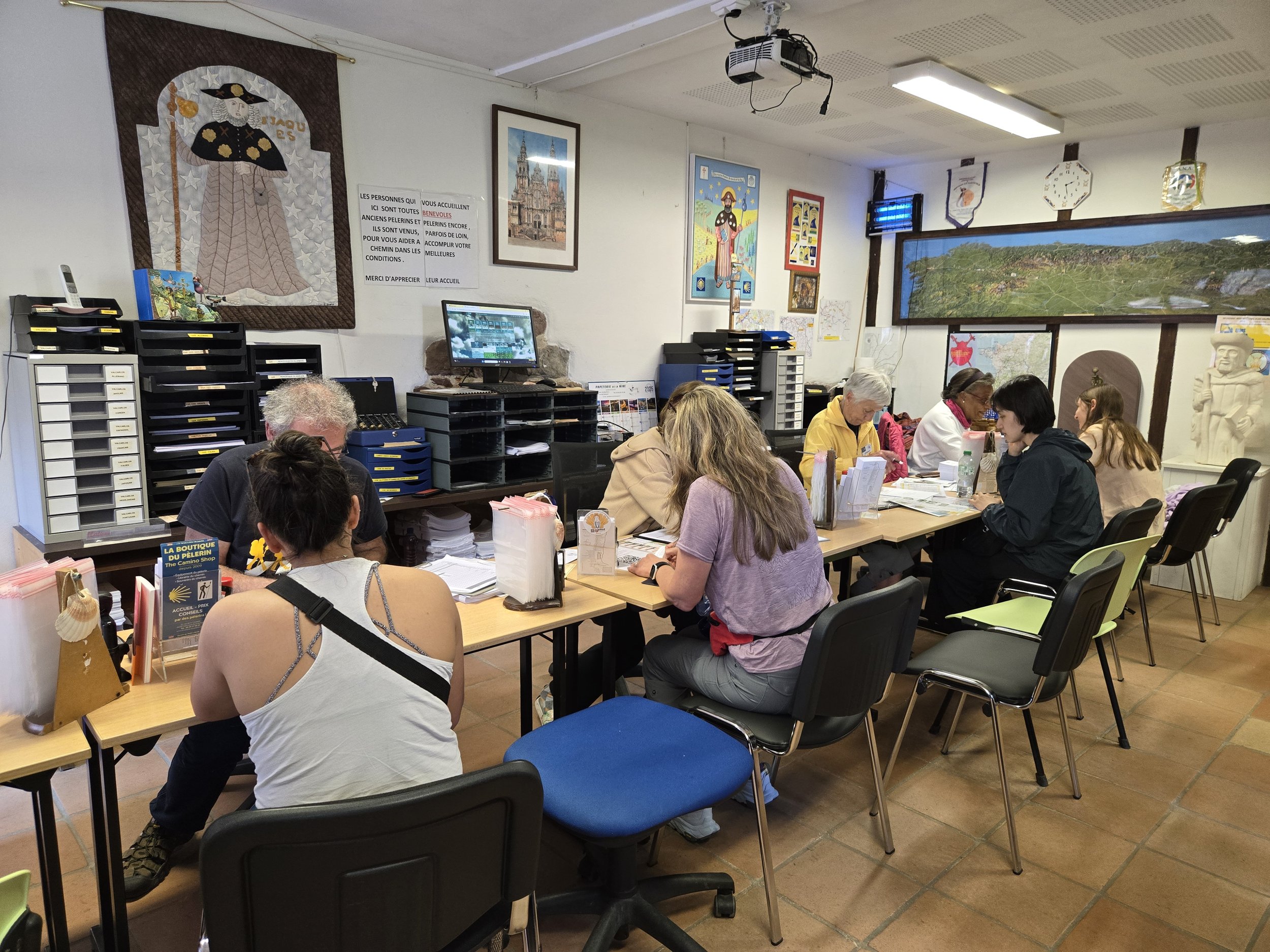 Arrived in SJPDP and said goodbye to Flavio who went to find his Albergue. I went to the Pilgrim’s office at 2pm to get my Credential and first stamp and the lovely volunteers also gave me a map and useful advice about crossing the Napoleon pass. My first Albergue I had booked months ago, Gite Beilari opened at 3pm and I checked in. They keep all shoes and backpacks on the back patio and gave us each a small box to put belongings in and carry up to our rooms. I met a wonderful group of pilgrims, including Lisa (Denmark) who ate soup with me for lunch. After, I walked around the quaint village and bought my hiking poles, a sun hat, Camino map buff, and a rain poncho after finding a working ATM (thank goodness! What would I do without cash?).